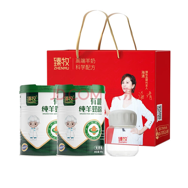 臻牧(zhenmu)中老年无蔗糖高钙羊奶粉大容量有机纯羊奶粉400g*2罐礼袋装送老人