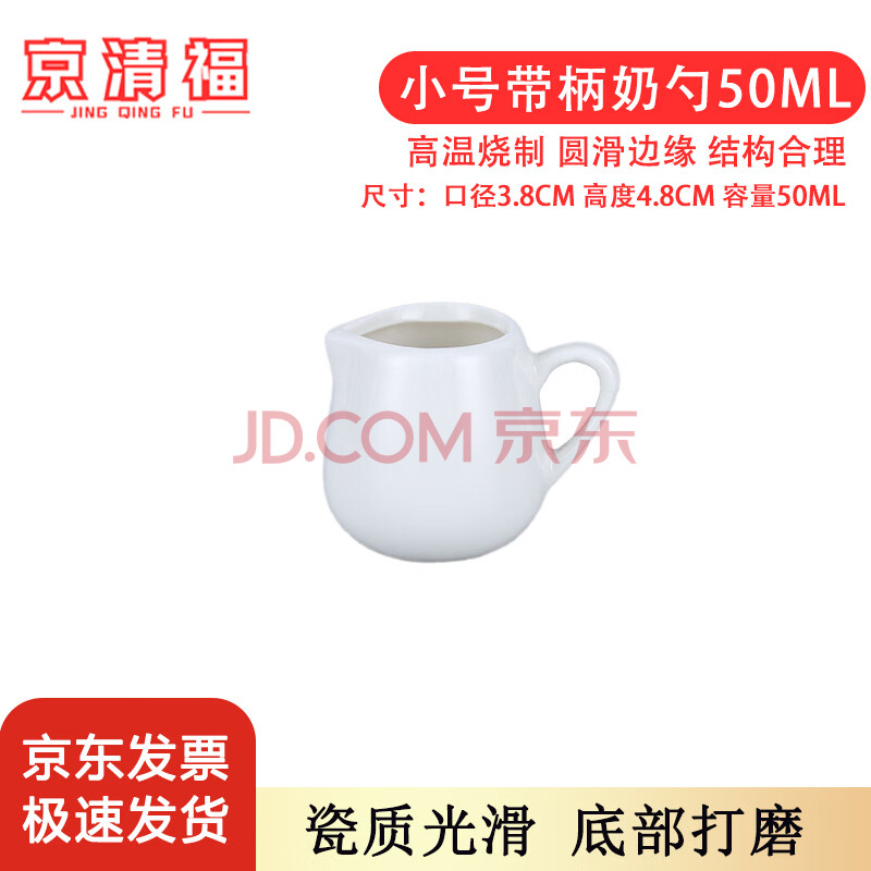 京清福 陶瓷奶勺酱汁勺子咖啡奶盅炼奶勺糖缸牛排汁斗 小号有把奶勺50ML