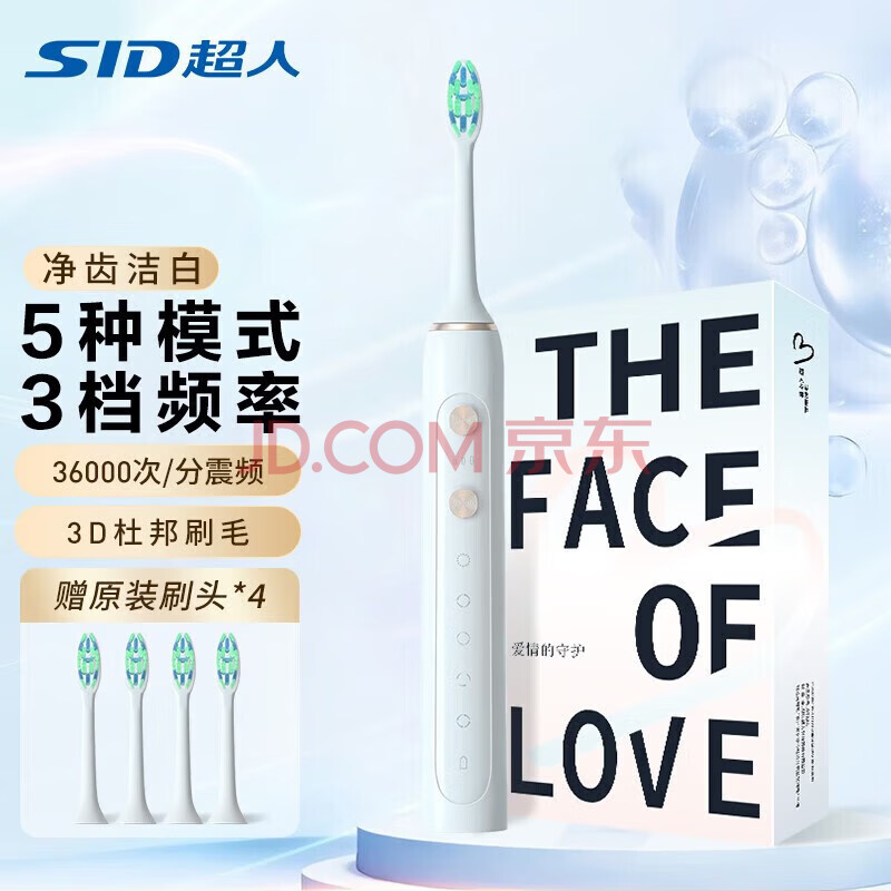 超人电动牙刷充电牙刷软毛女士情侣电动牙刷成人送男友 RT860 白色