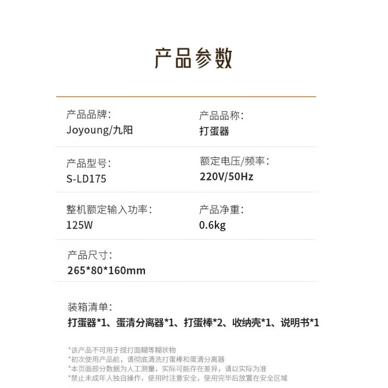 九阳(Joyoung)手持电动打蛋器料理机 打发器 多功能家用搅拌机迷你打奶油烘焙 S-LD175