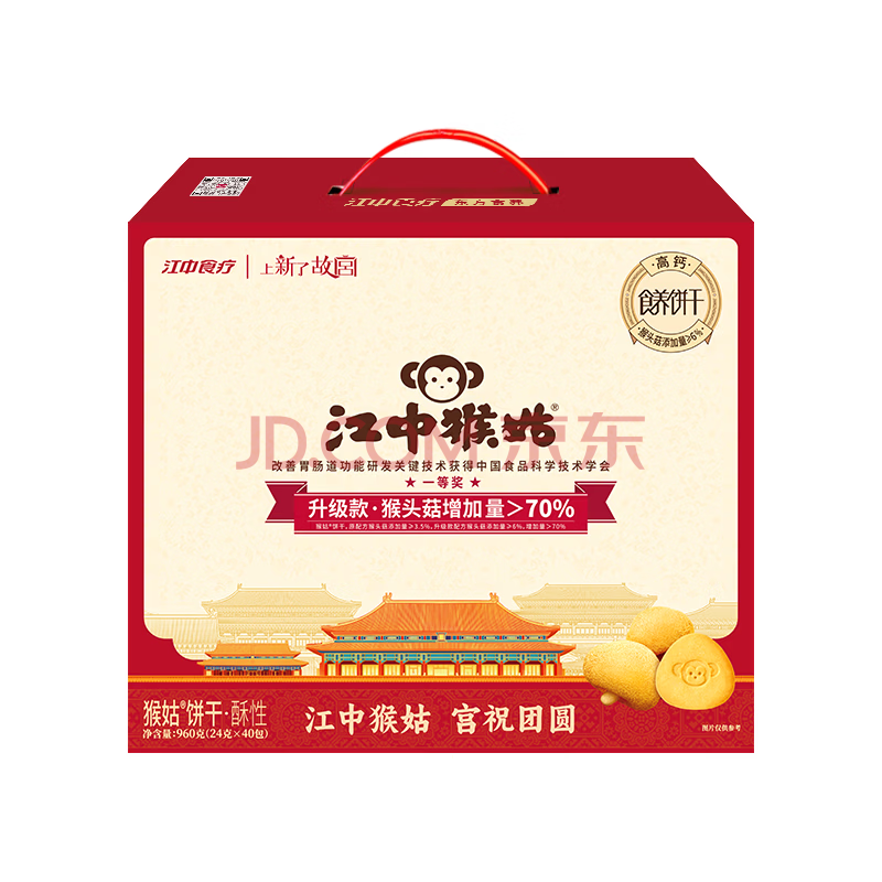 江中猴姑【侯明昊同款】养胃有糖酥性猴头菇饼干年货礼盒960g营养早餐零食