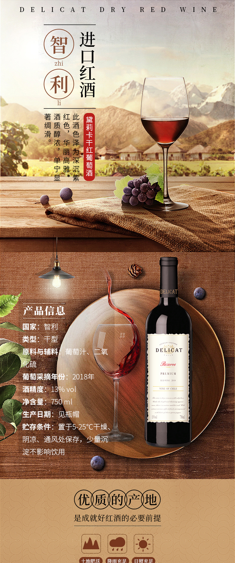 【智利进口】黛莉卡干红葡萄酒 750ml 单支装