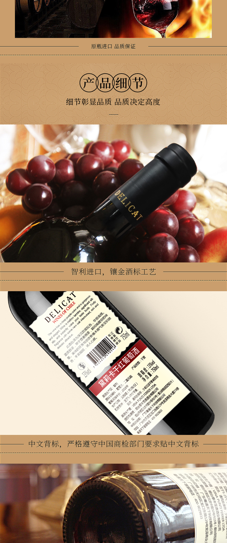 【智利进口】黛莉卡干红葡萄酒 750ml 6支装