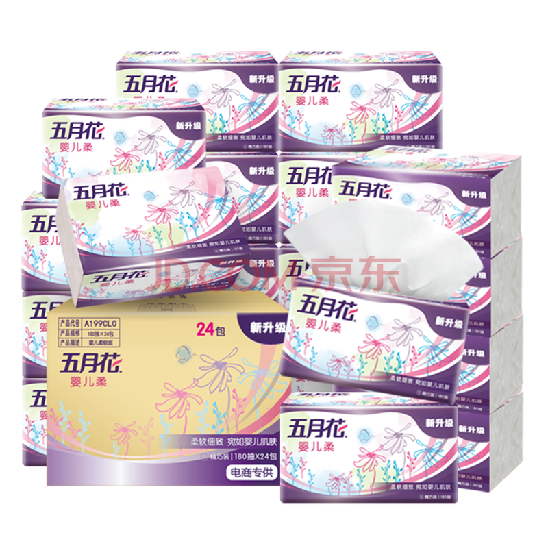五月花(May Flower)抽纸 2层180抽*24包S码软抽 柔软亲肤面巾纸 整箱装