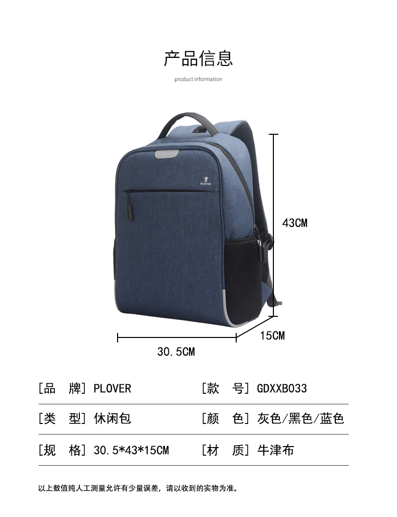 啄木鸟PLOVER时尚韩版休闲背包商务通勤电脑包男女商务背包笔记本包书包旅行包GDXXB033