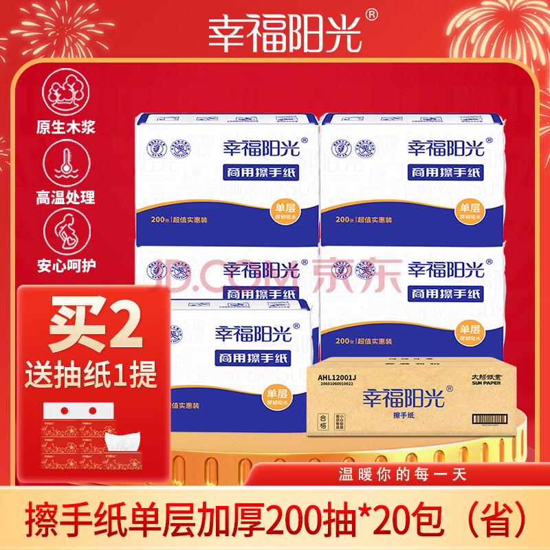 幸福阳光擦手纸巾单层加厚200抽*20包