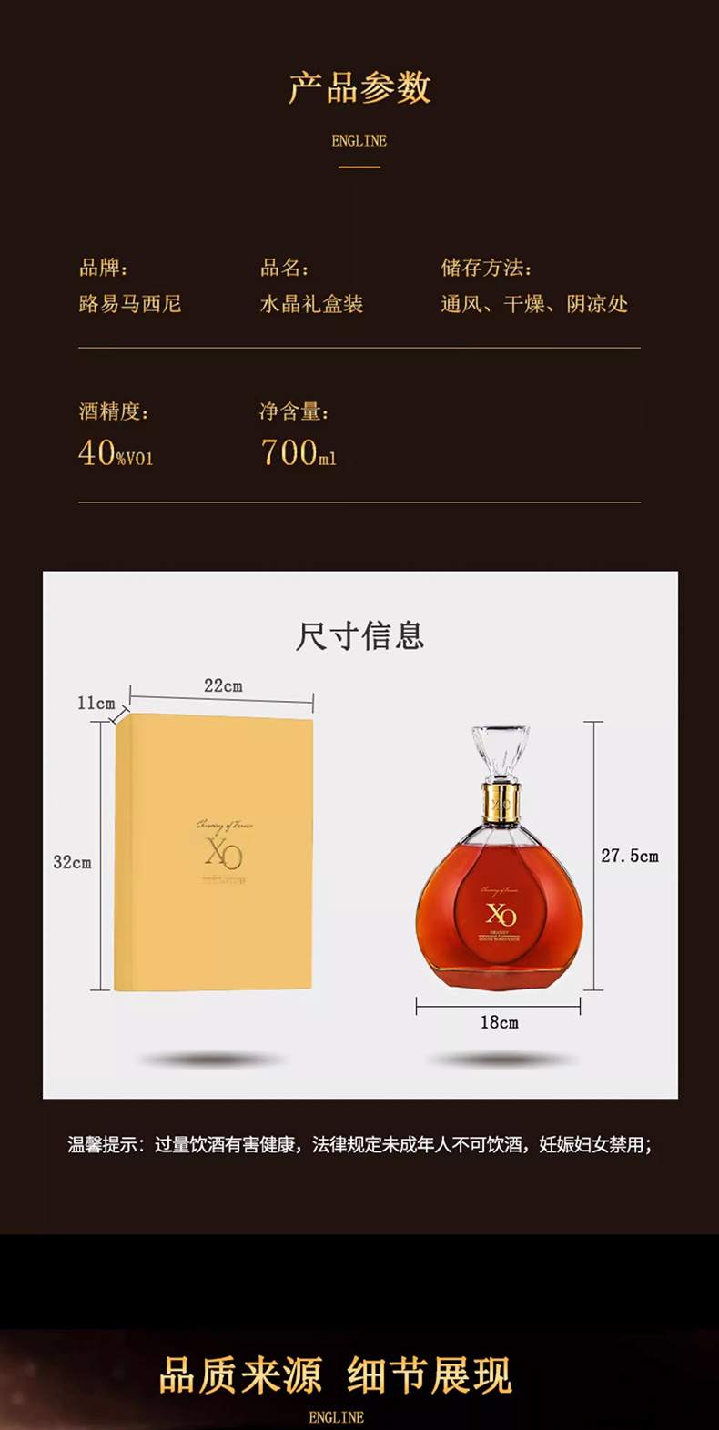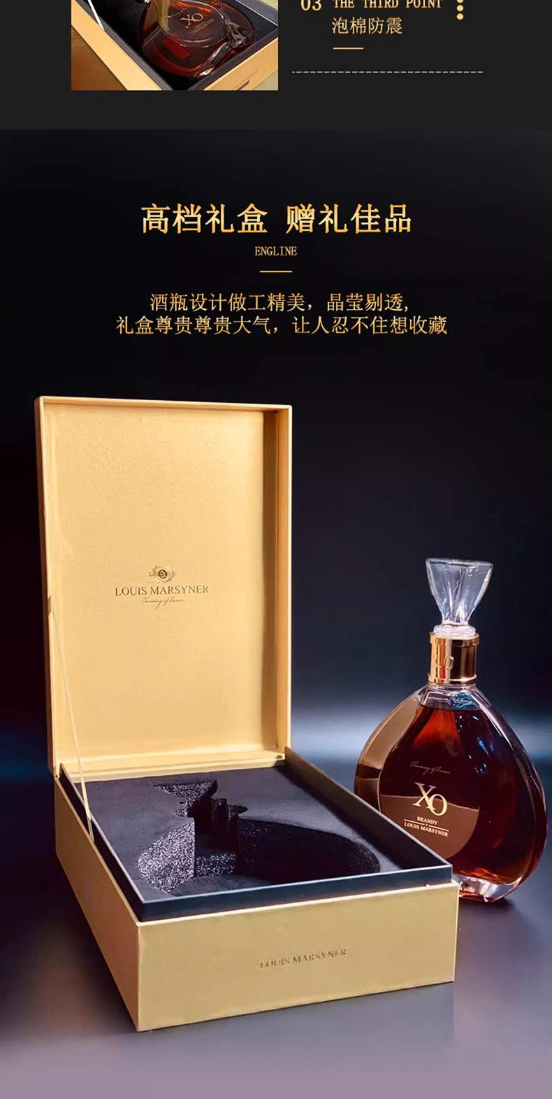 路易马西尼水晶XO白兰地洋酒调酒700ml【礼盒】