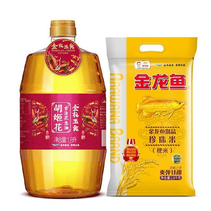 胡姬花金衣玉食古法花生油1.8L+ 金龙鱼御品珍珠米2.5kg