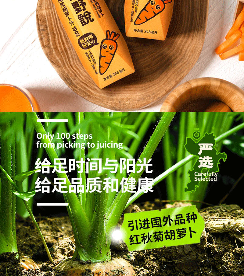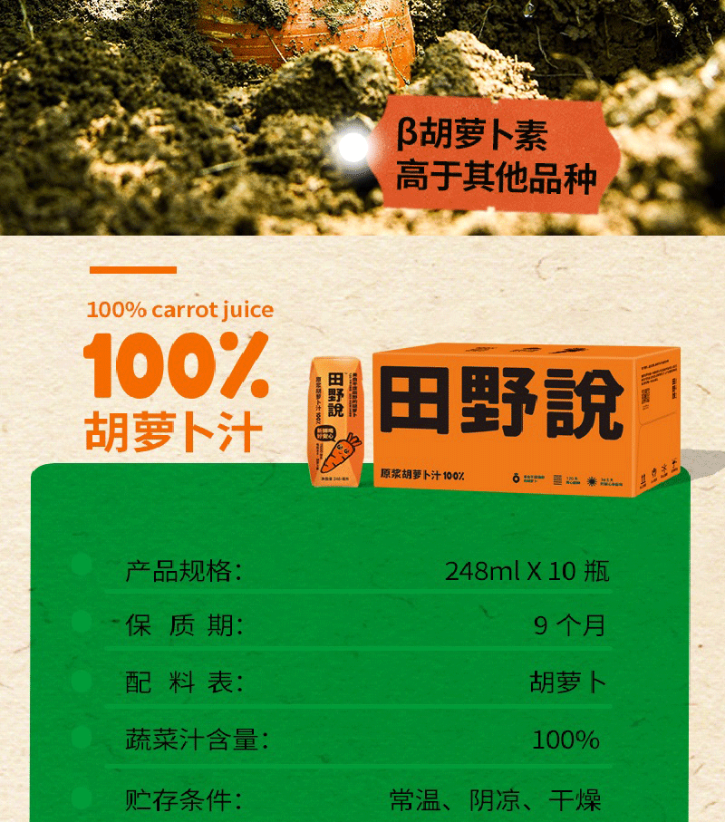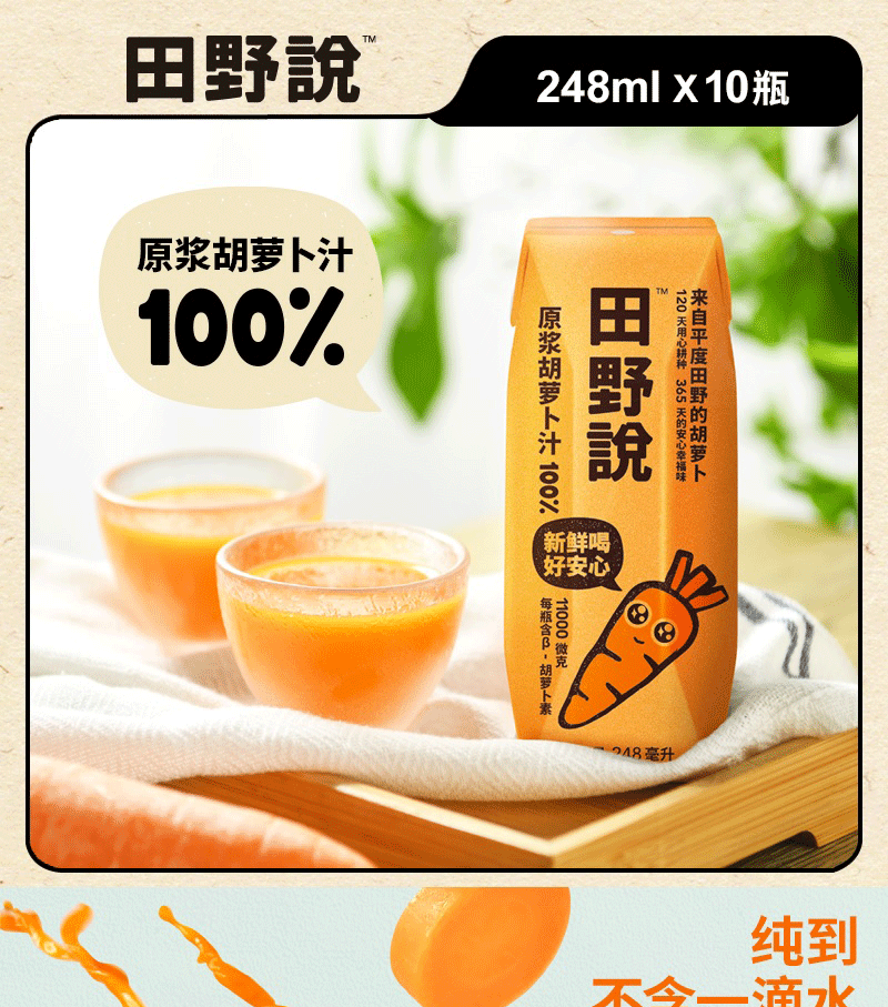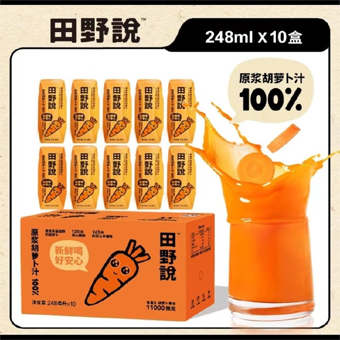 田野说100%原浆胡萝卜汁(标准装)248ml*10盒