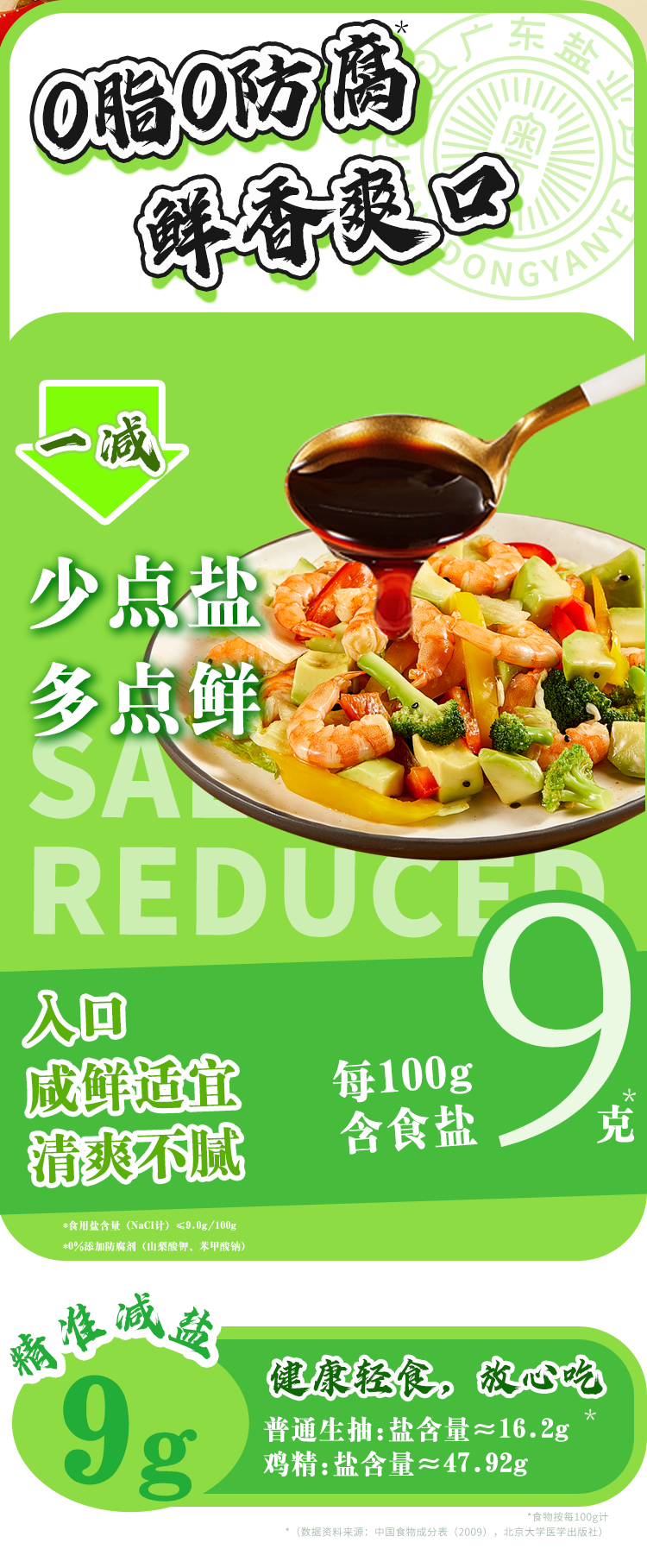 粤盐 轻盐无碘蚝油530g*2瓶 0脂肪0防腐减盐蚝油蘸炒菜调味品