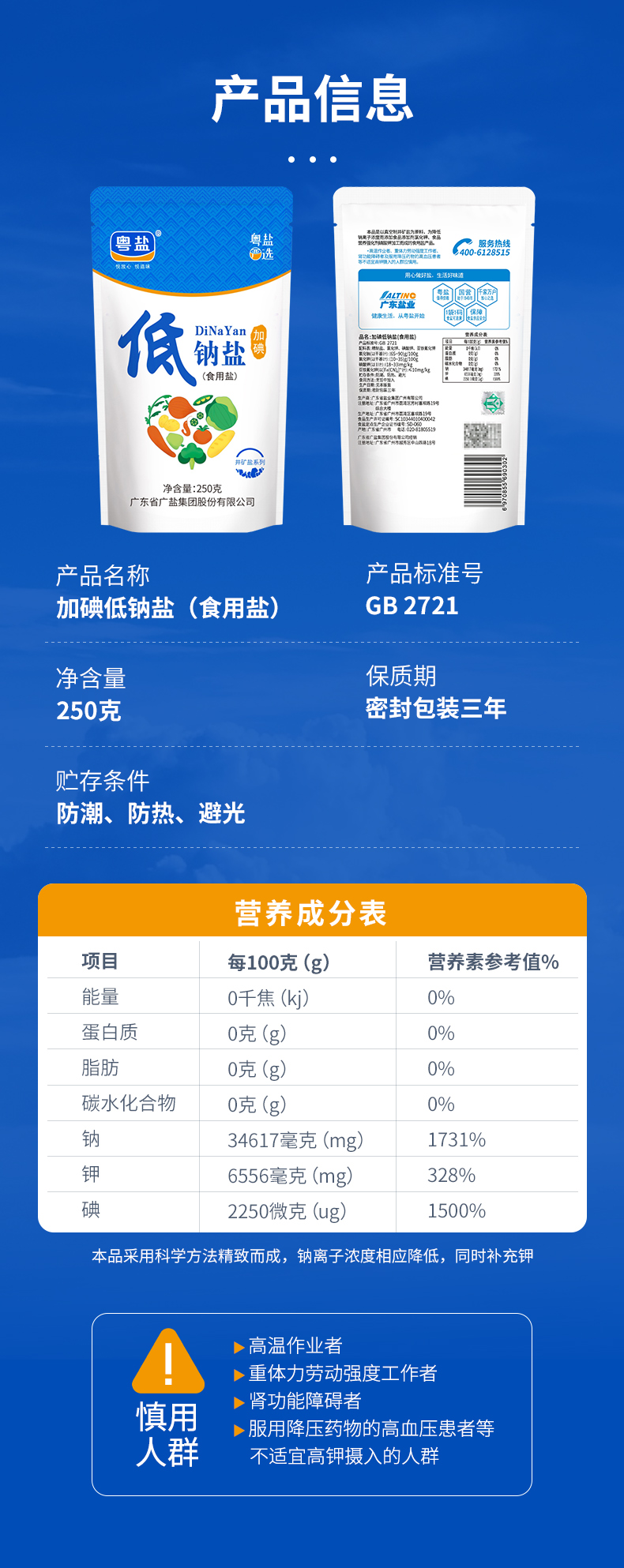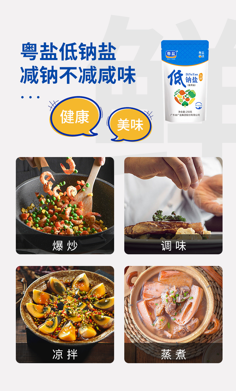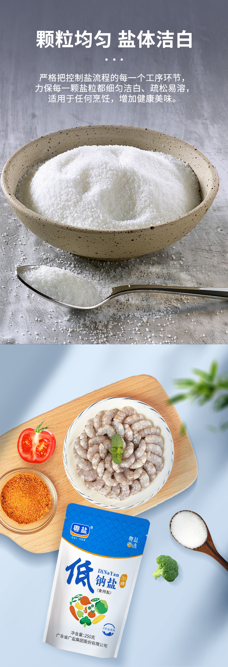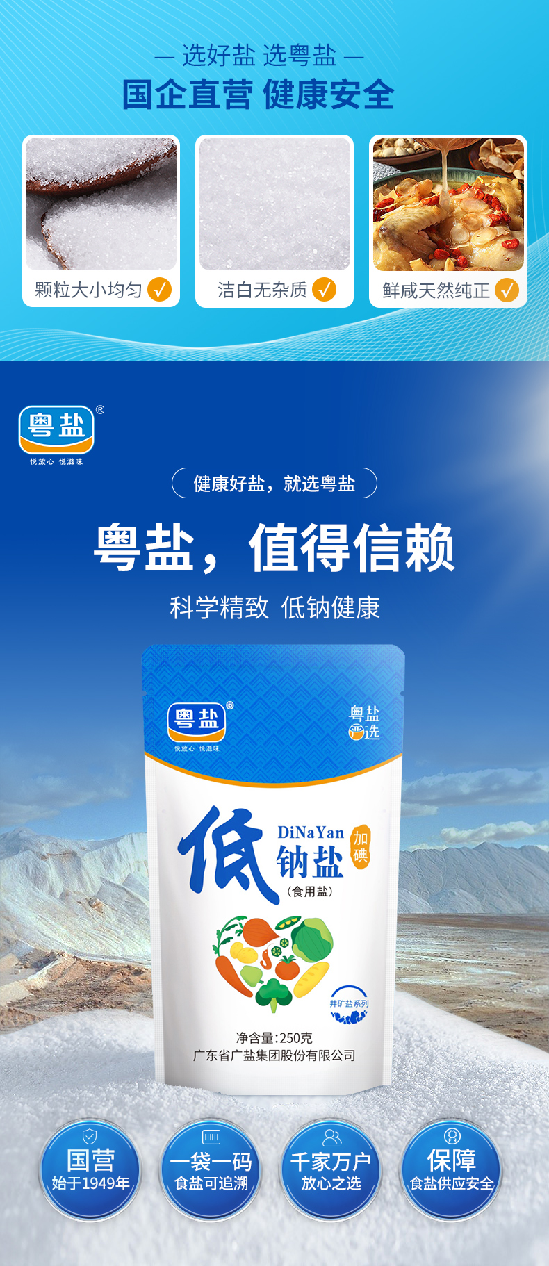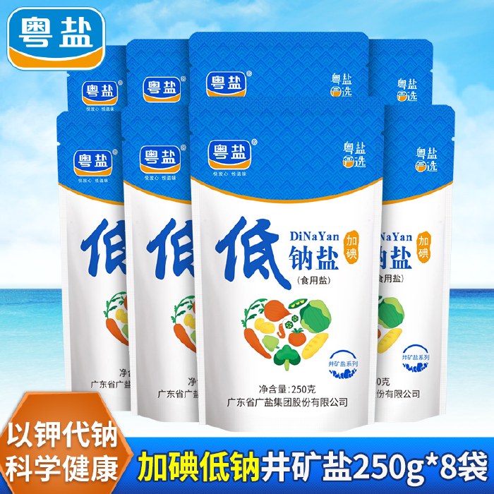 粤盐 加碘低钠盐250g*8袋 调味料 食用盐厨房调料调味品