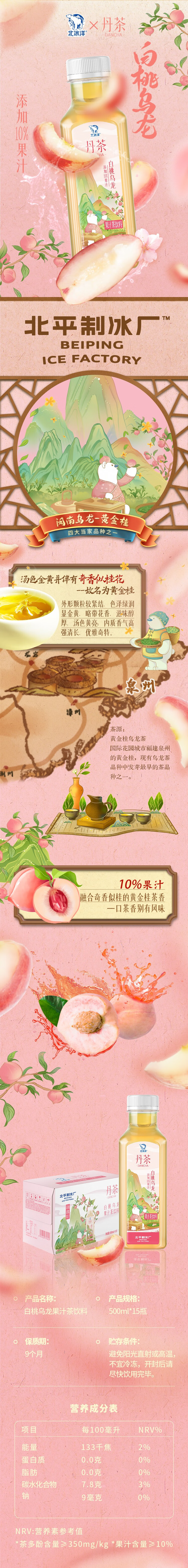 北冰洋×丹茶 白桃乌龙果汁茶饮料500ml*15瓶(箱)饮料茶饮料饮品