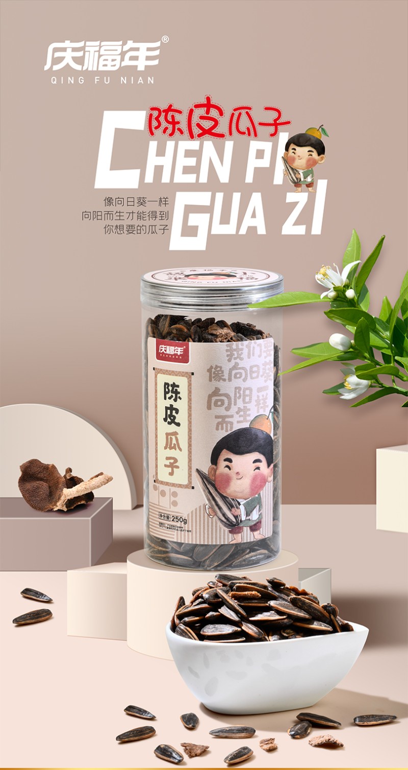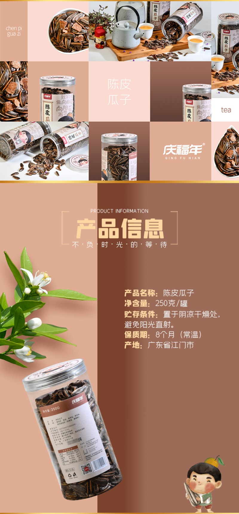 庆福年 新会原产地陈皮瓜子炒货即食零食圆罐装250克