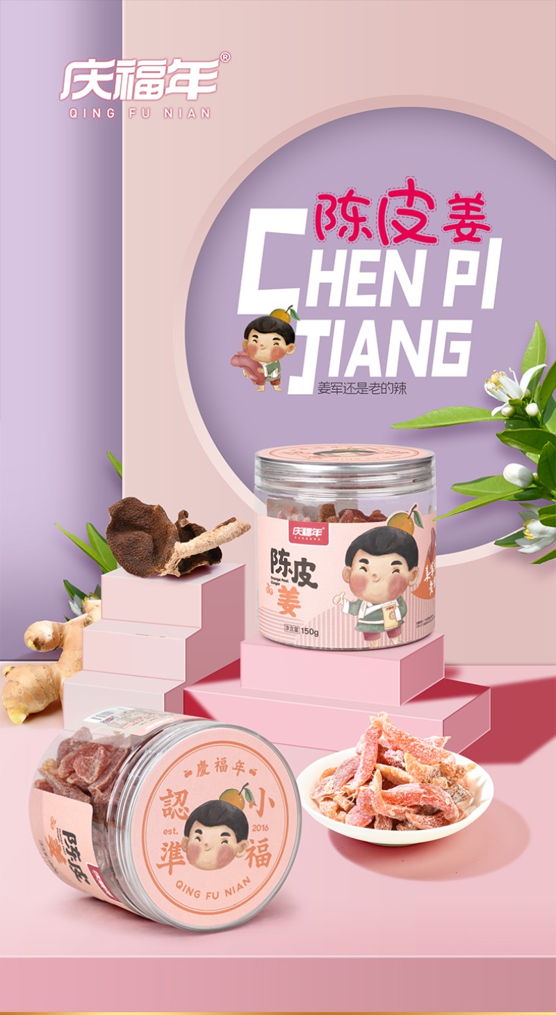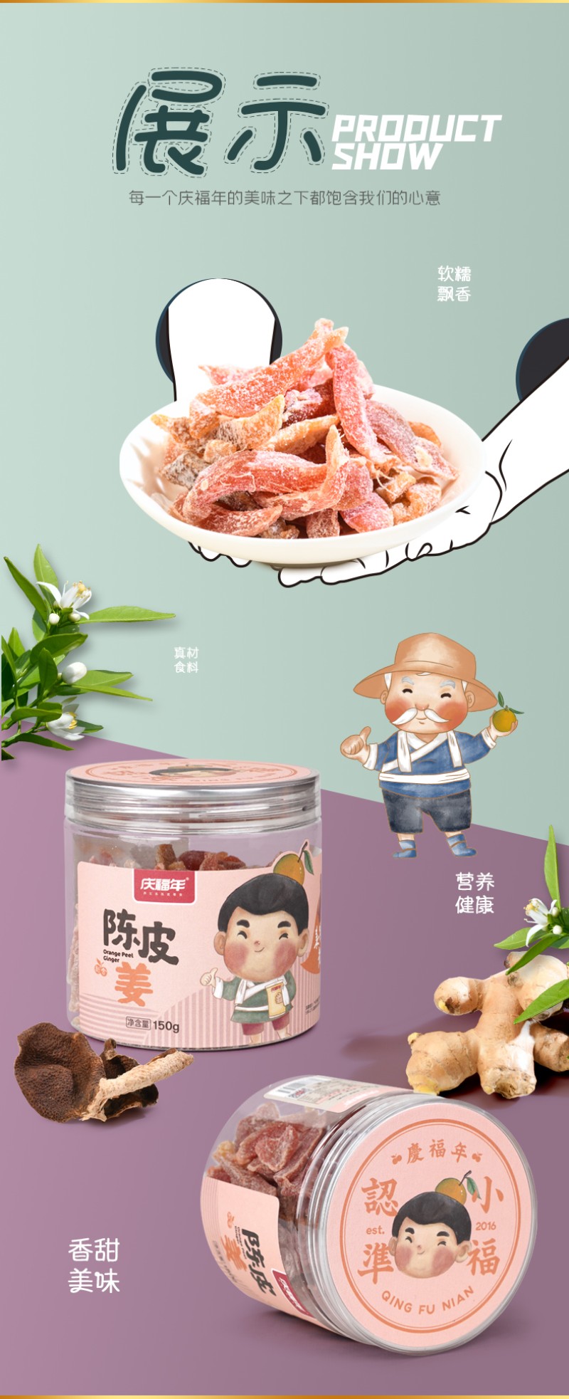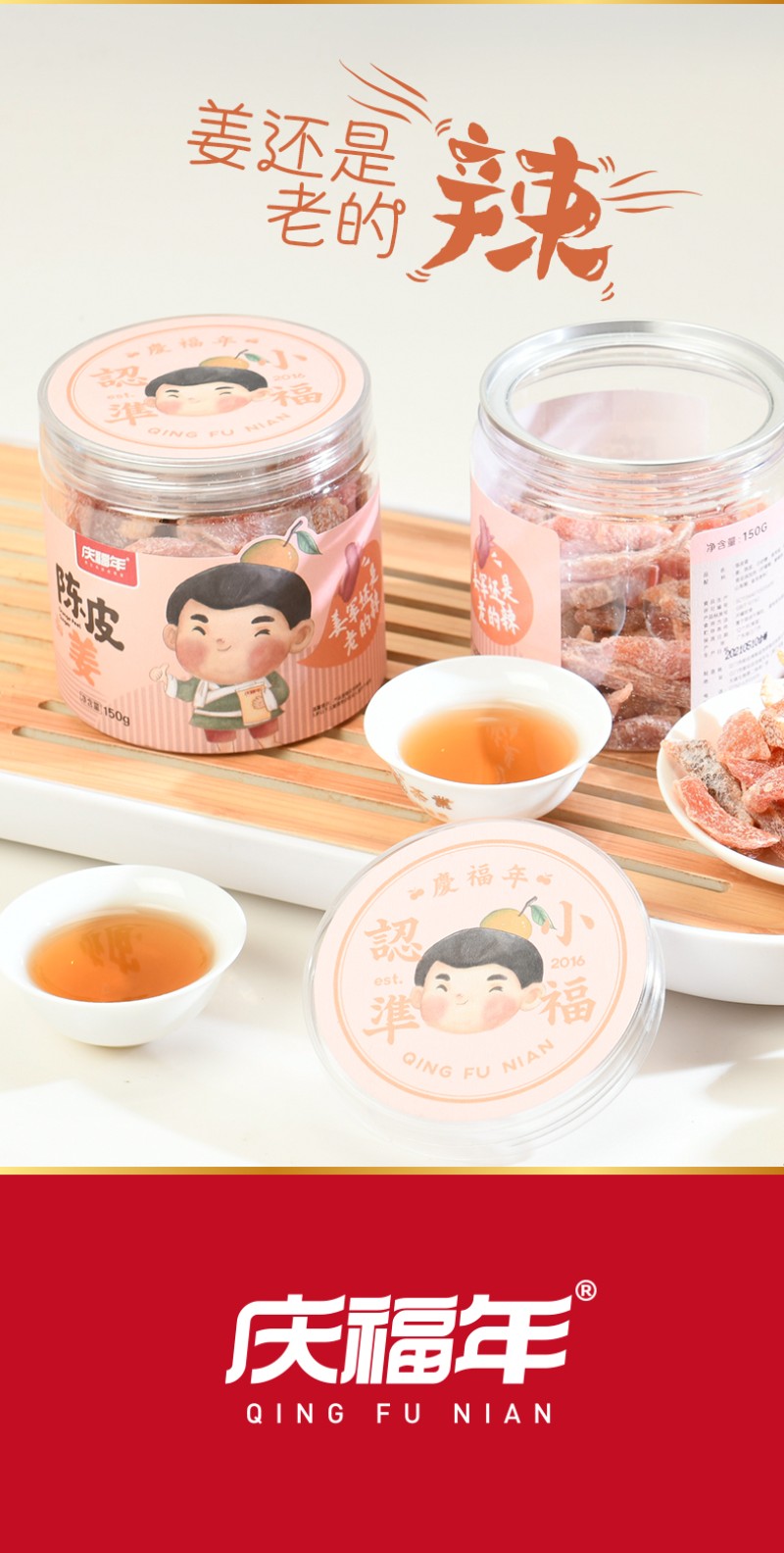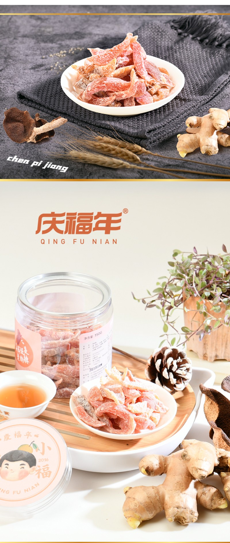 庆福年 新会原产地陈皮姜蜜饯即食零食圆罐装150克