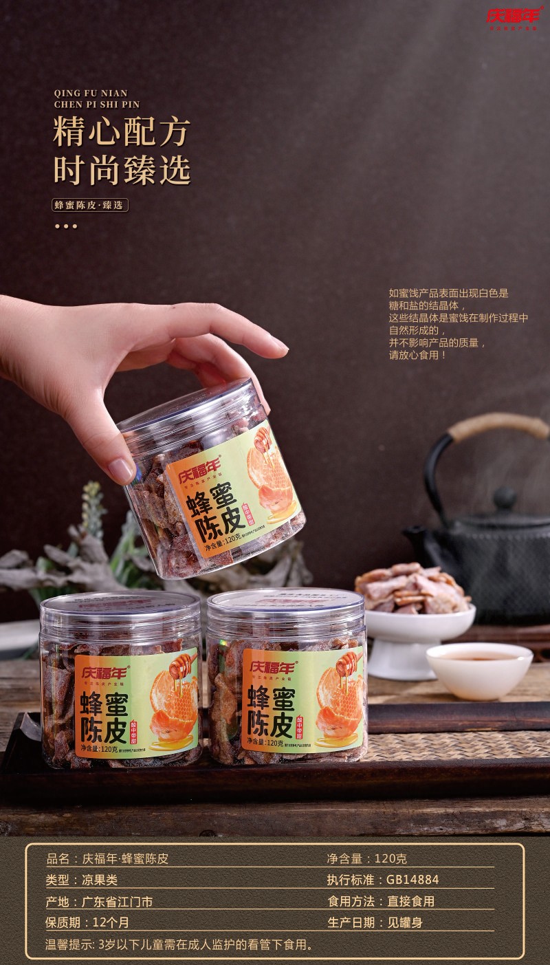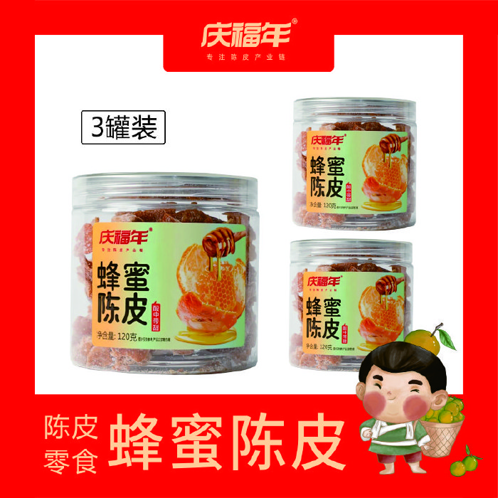 庆福年 新会原产地蜂蜜陈皮即食零食120g*3罐装 共360克