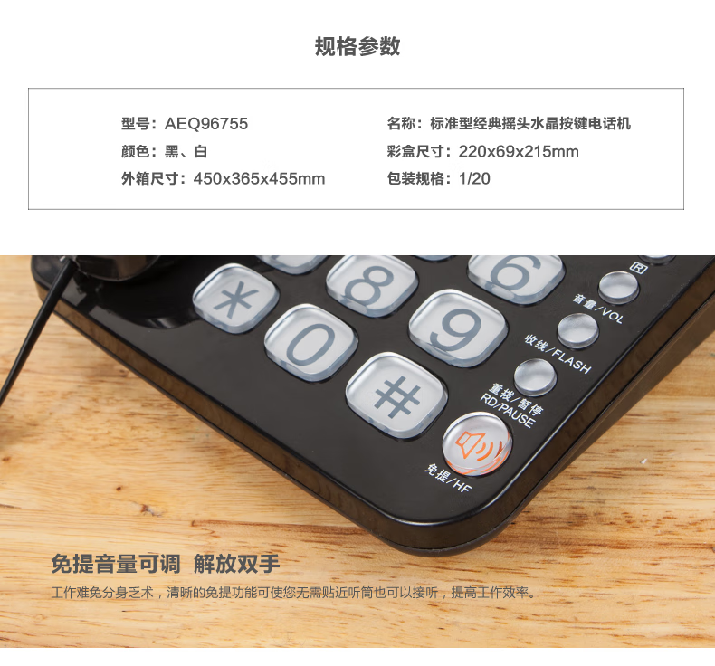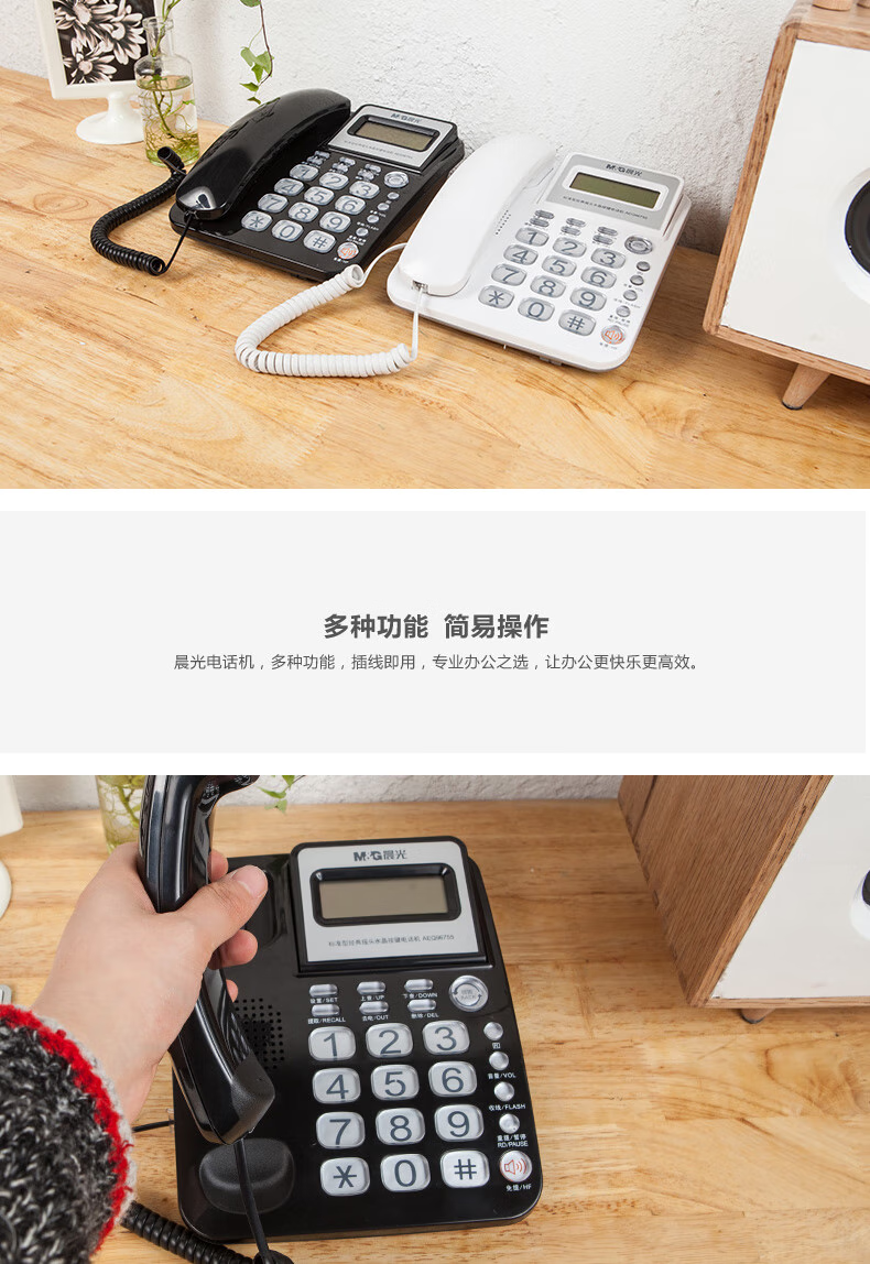 晨光电话机标准经典摇头水晶按键 AEQ96755 办公座机按键电话机
