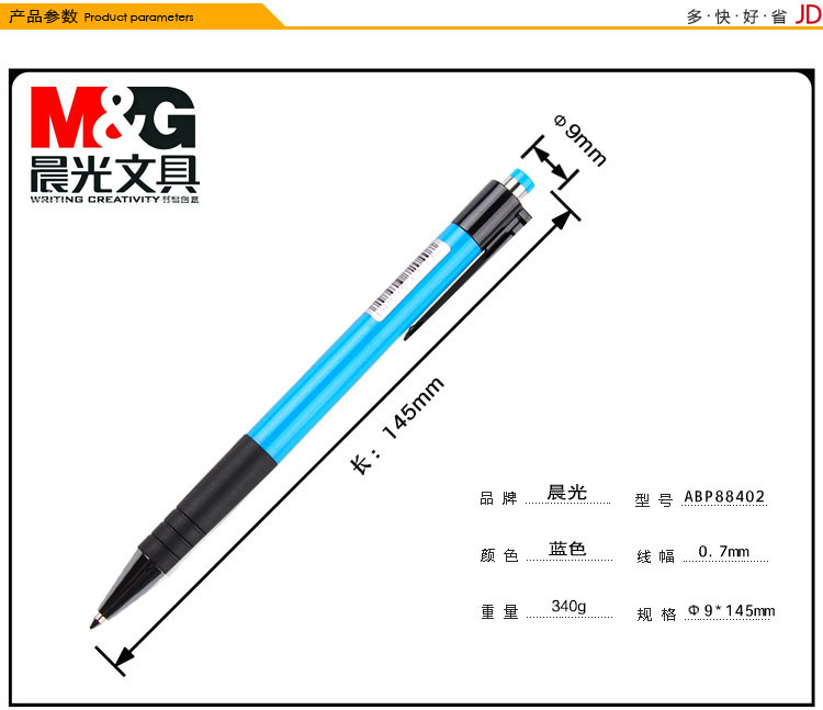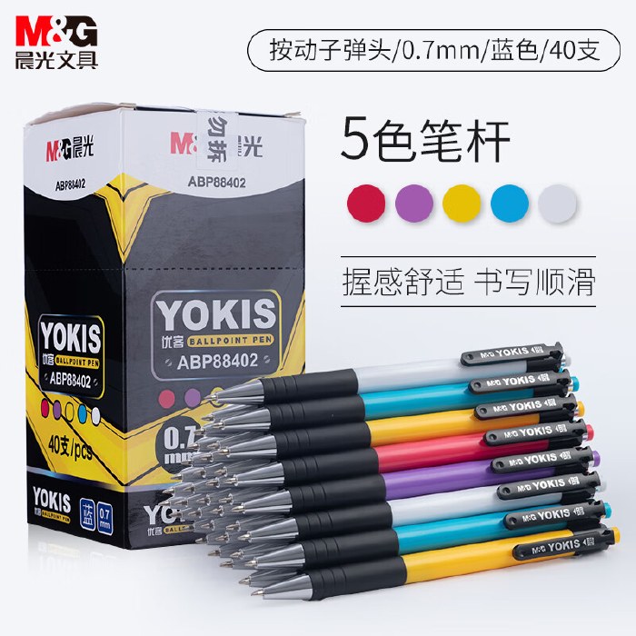 【40支/盒】晨光圆珠笔ABP88402 蓝色0.7mm 经典按动圆珠笔办公子弹头原子笔