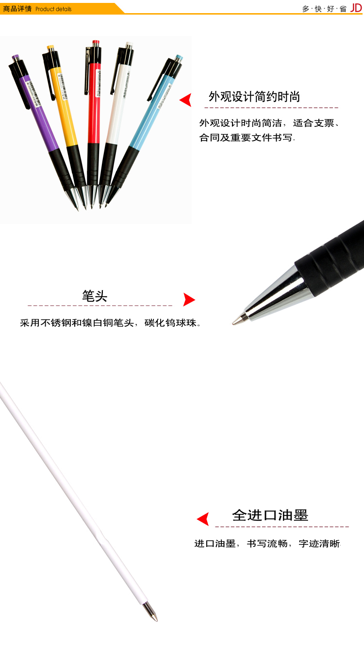 得力(deli)S01中性笔签字笔 0.5mm子弹头经典办公按动笔水笔 12支/盒