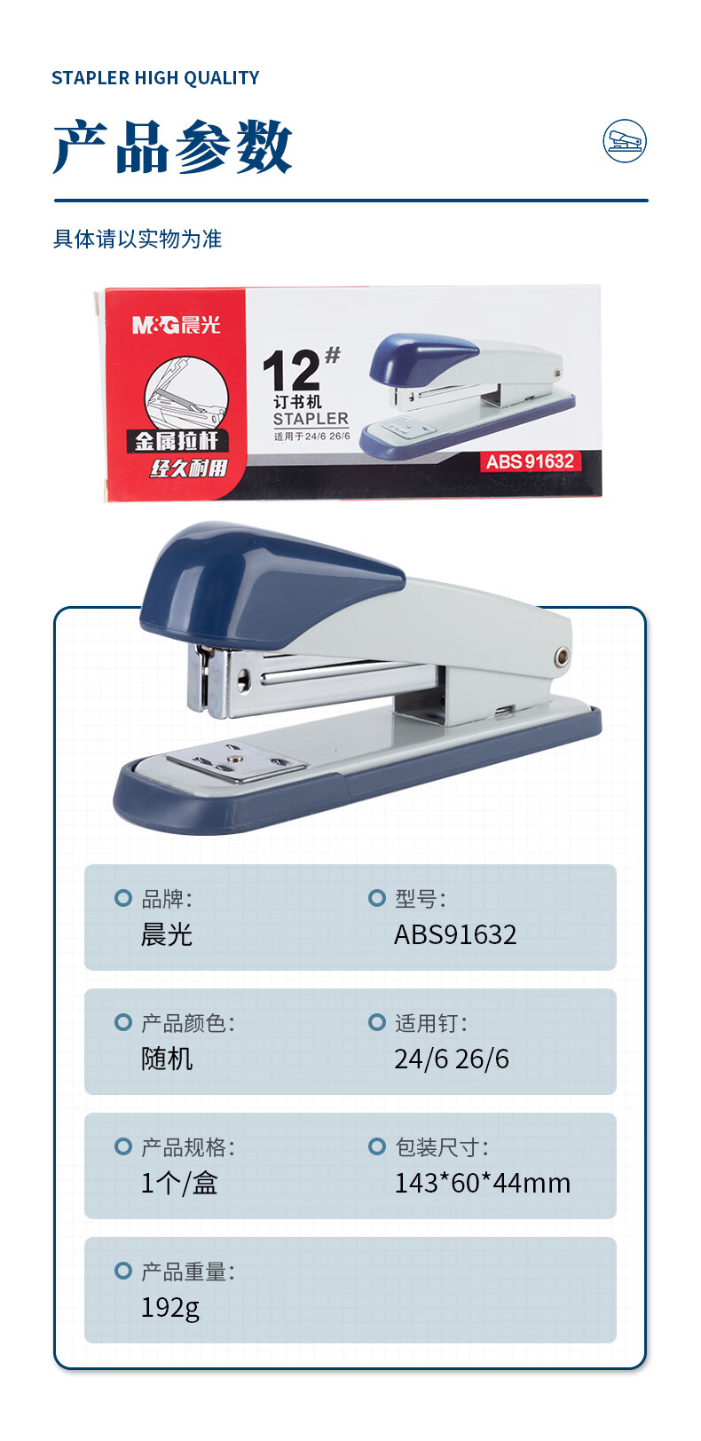 晨光订书机经典办公12号 混色 ABS91632 颜色随机【1个装】
