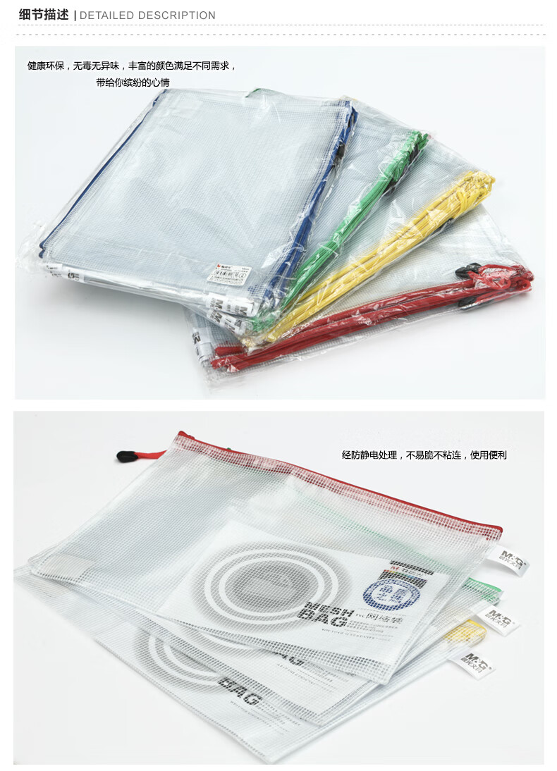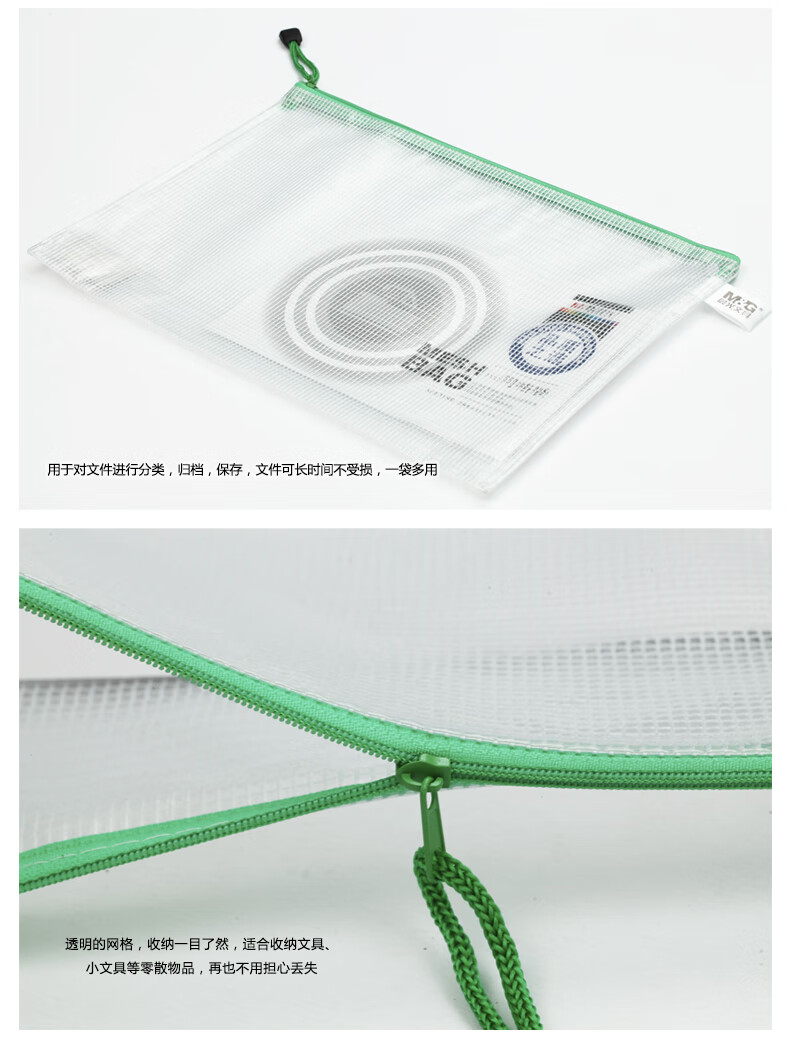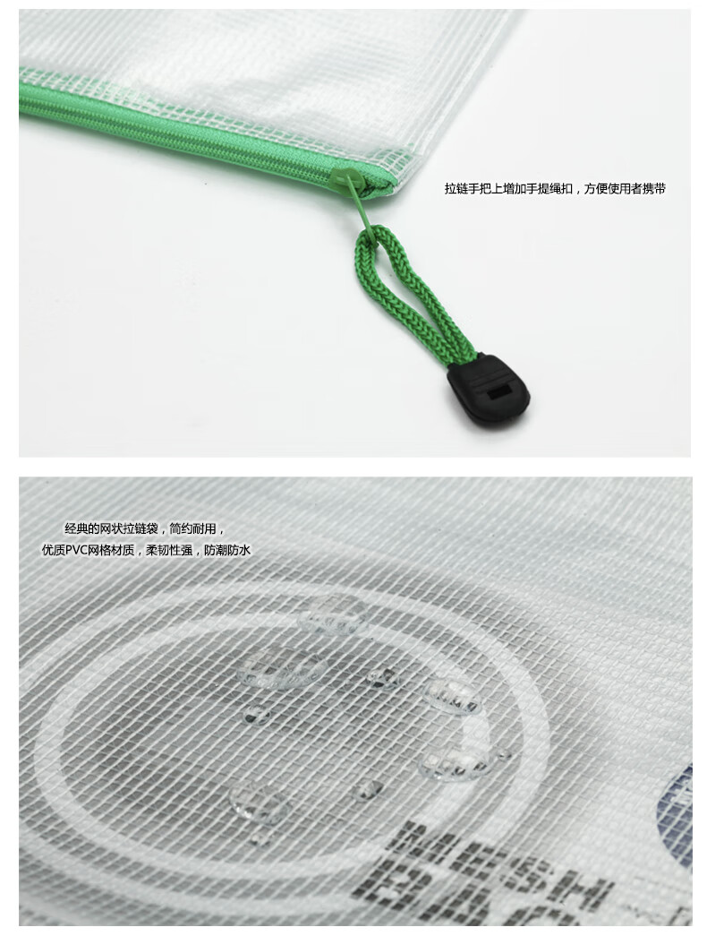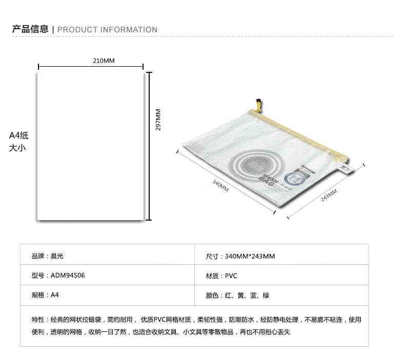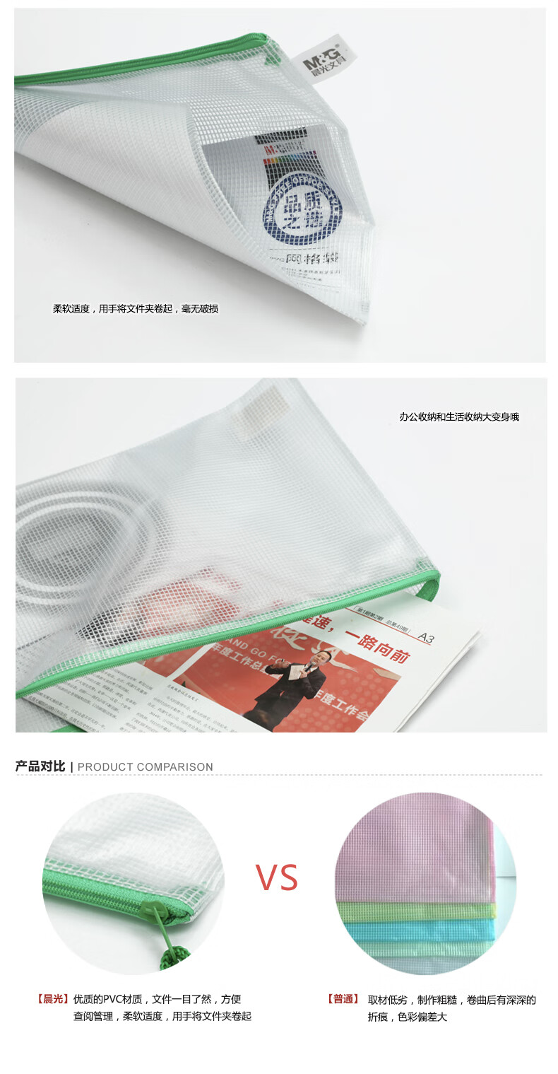 【12个装】晨光拉链袋PVC透明A4-ADM94506 文件袋防水袋网格网纹袋票据资料袋 颜色随机
