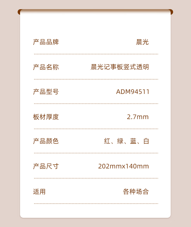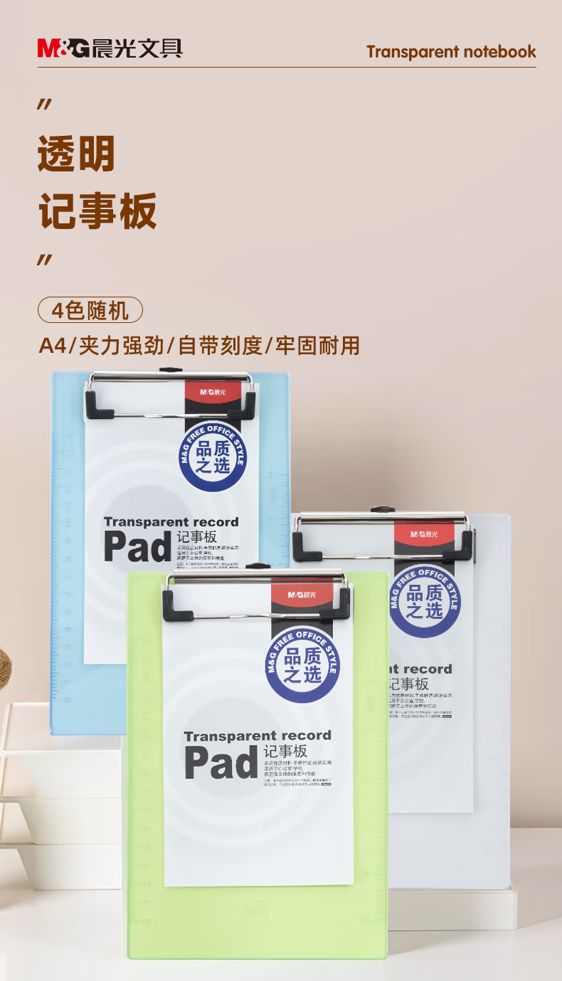 晨光记事板竖式透明ADM94511【1个装】颜色随机 票据夹塑料板夹垫板竖款文件板