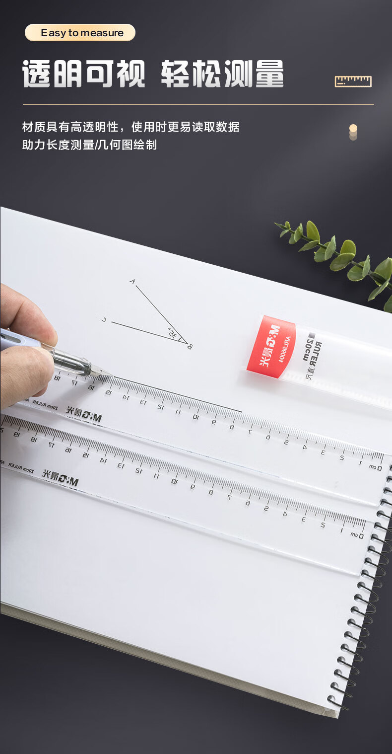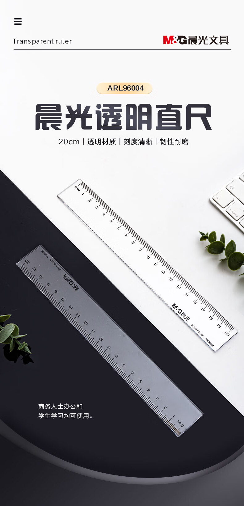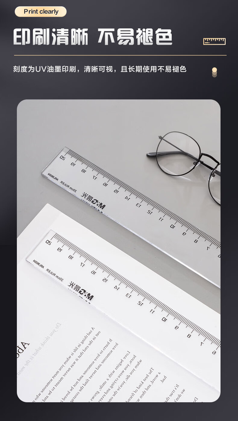 【30把装】晨光直尺办公透明尺子小学生文具考试专用中考高考刻度尺 20cm/30cm ARL96004/ARL96005
