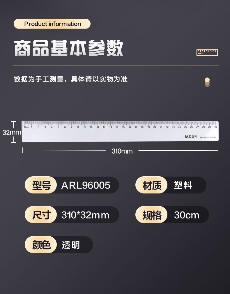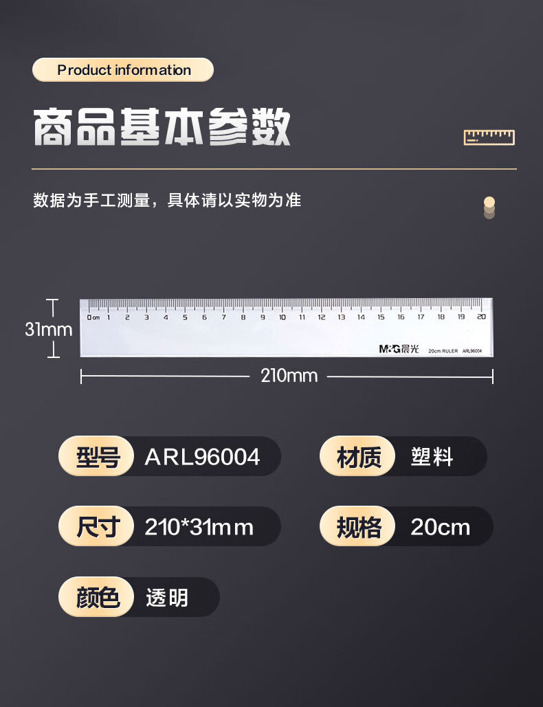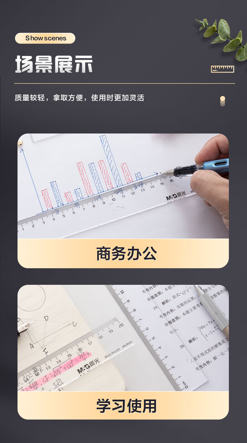 【30把装】晨光直尺办公透明尺子小学生文具考试专用中考高考刻度尺 20cm/30cm ARL96004/ARL96005