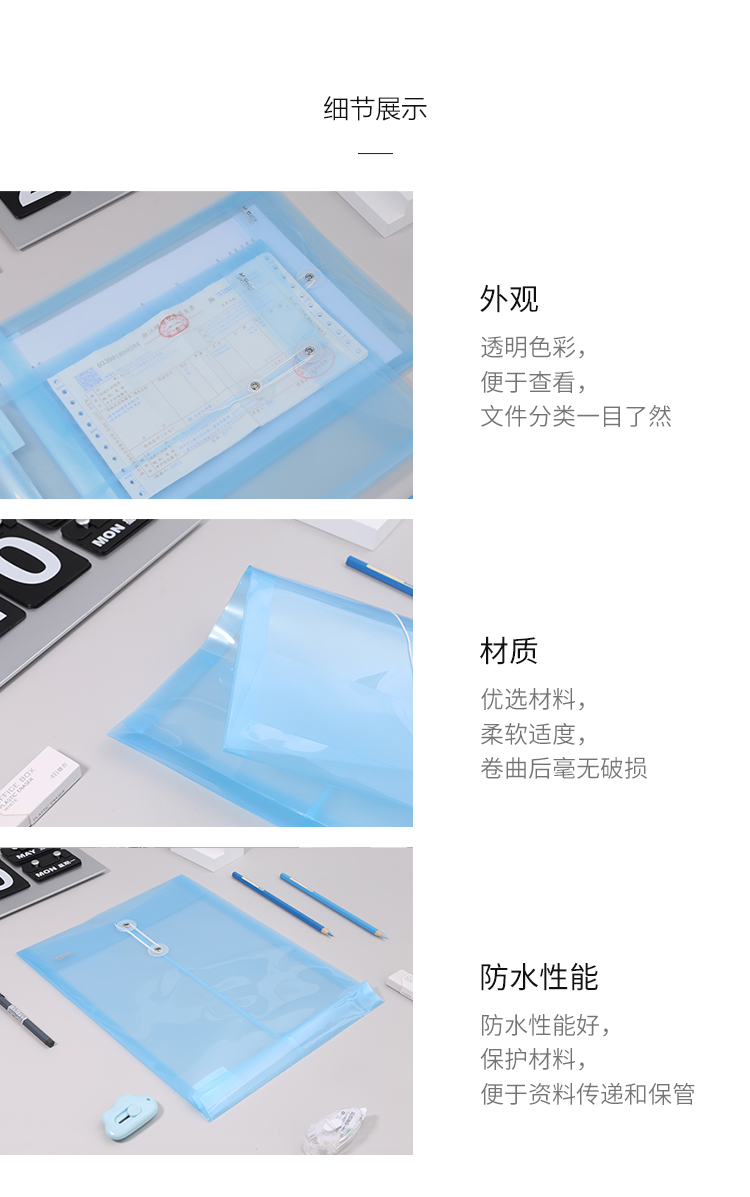 【12个装】晨光(M&G)文具A4竖式档案袋线扣文件袋白色塑料透明袋子ADM94518A