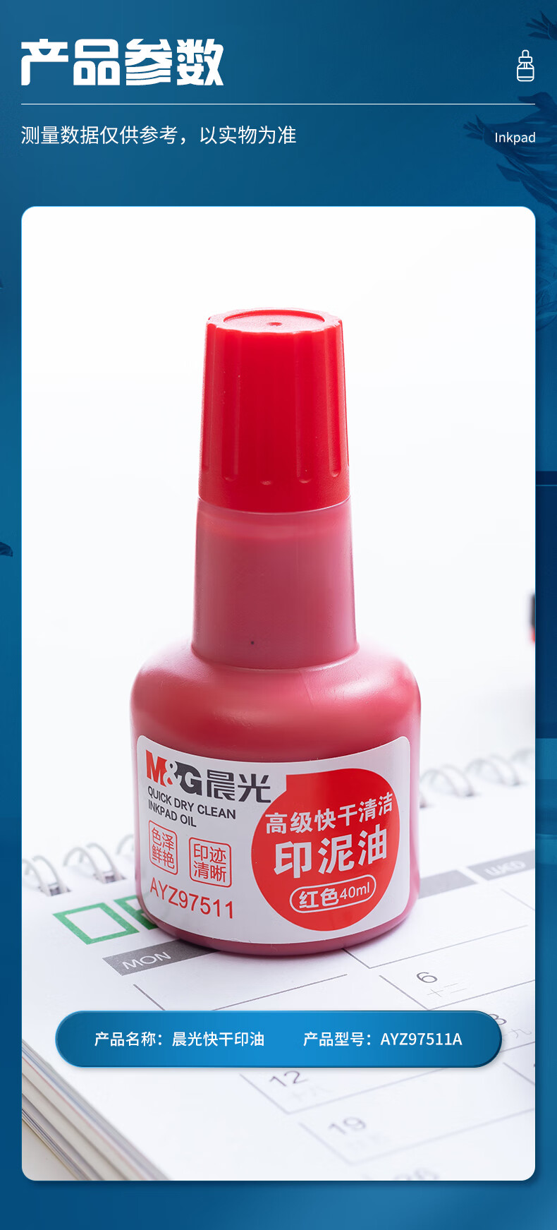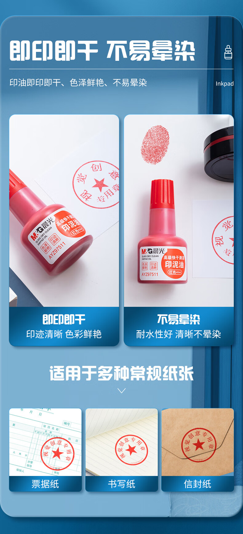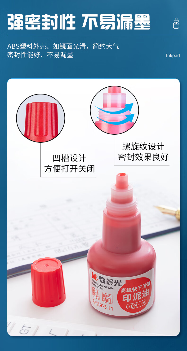【12瓶装】晨光(M&G)40ml印泥油高级快干清洁印油办公印章油 AYZ97511