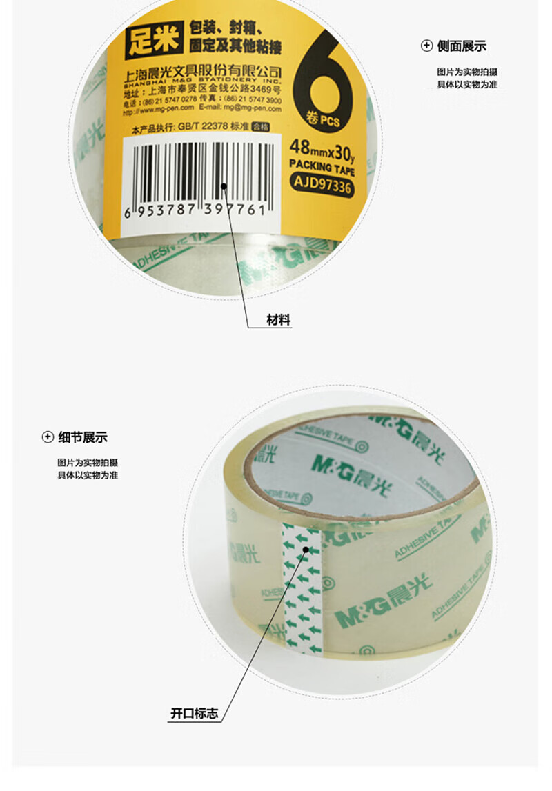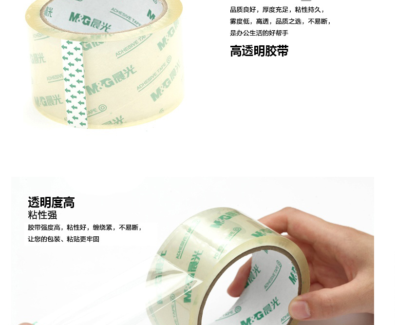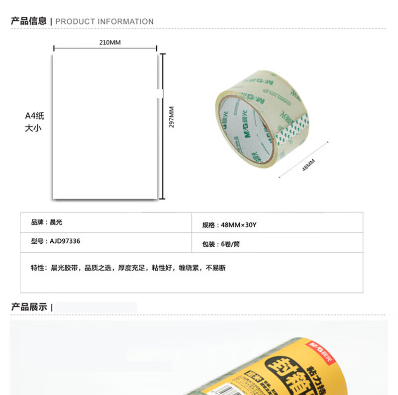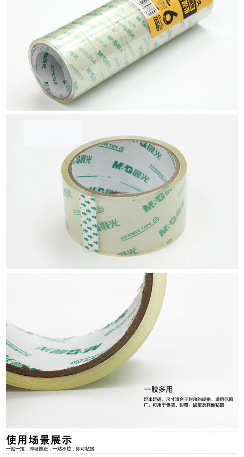 晨光(M&G)封箱胶带超透透明胶布普透快递打包胶带