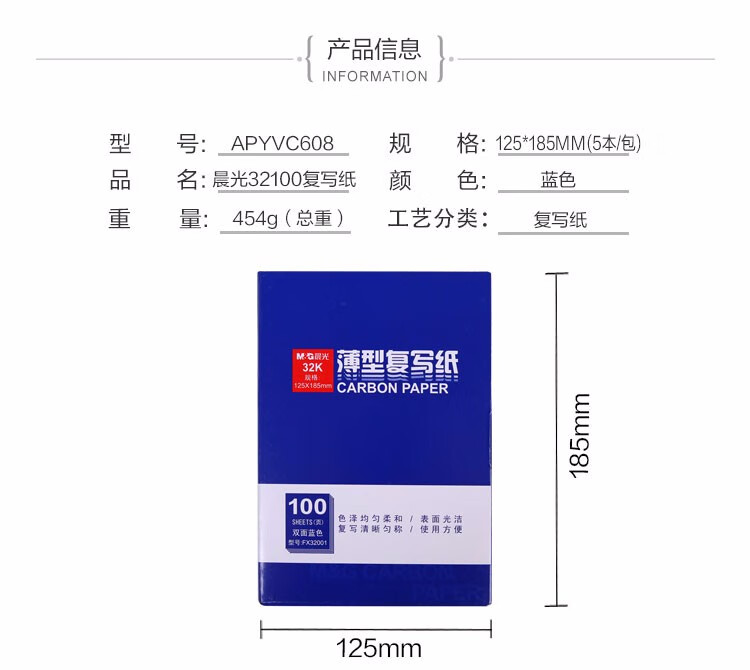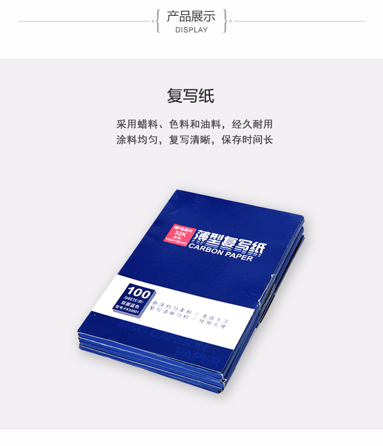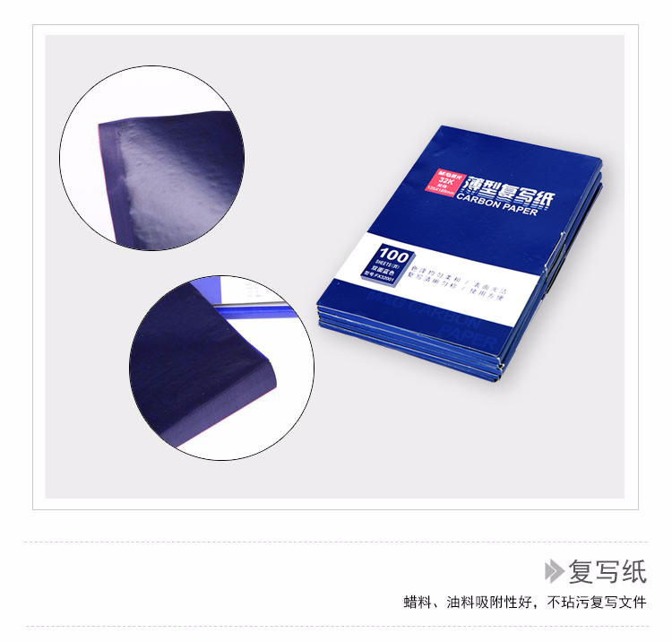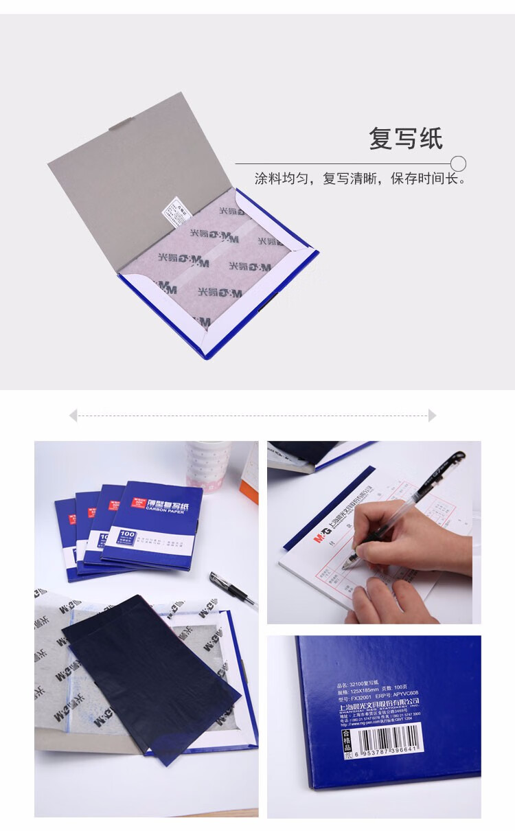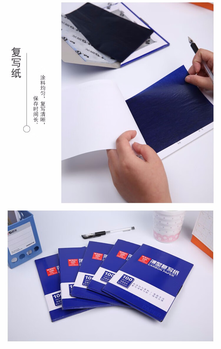 晨光(M&G)薄型复写纸清晰使用方便色泽柔和足量耐用财务填写单据专用 100张/本