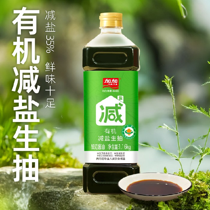 【1.16kg*2瓶装】加加零添加有机减盐35%生抽大瓶装0添加酱油