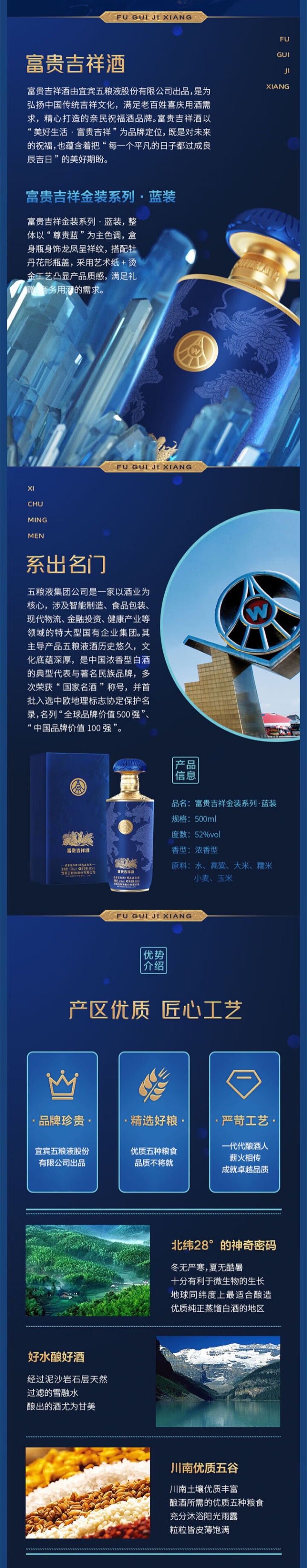 【粤强精选】52°五粮液富贵吉祥(蓝)浓香型白酒 500ml/瓶
