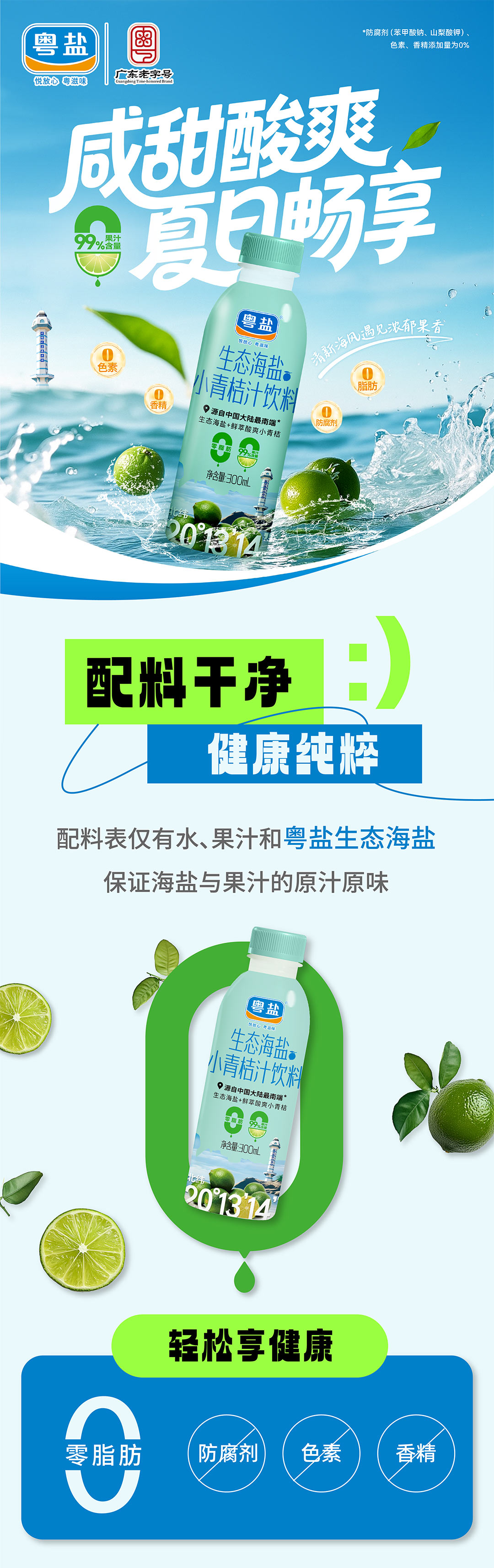 粤盐生态海盐小青桔汁饮料300ml/瓶 酸甜可口 解渴果汁饮料 6瓶/组/15瓶/箱