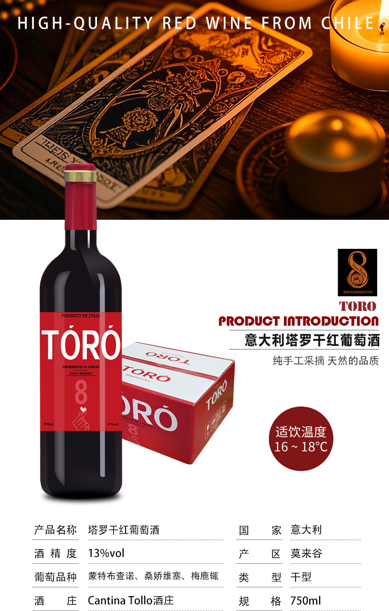 意大利进口塔罗干红葡萄酒750ml*2瓶红酒 赠送高端礼盒+菲斯精酿啤酒1L*2瓶