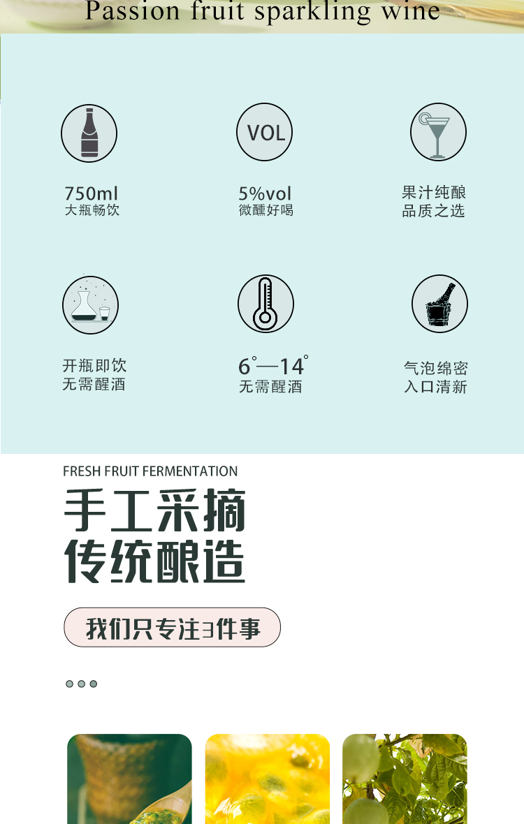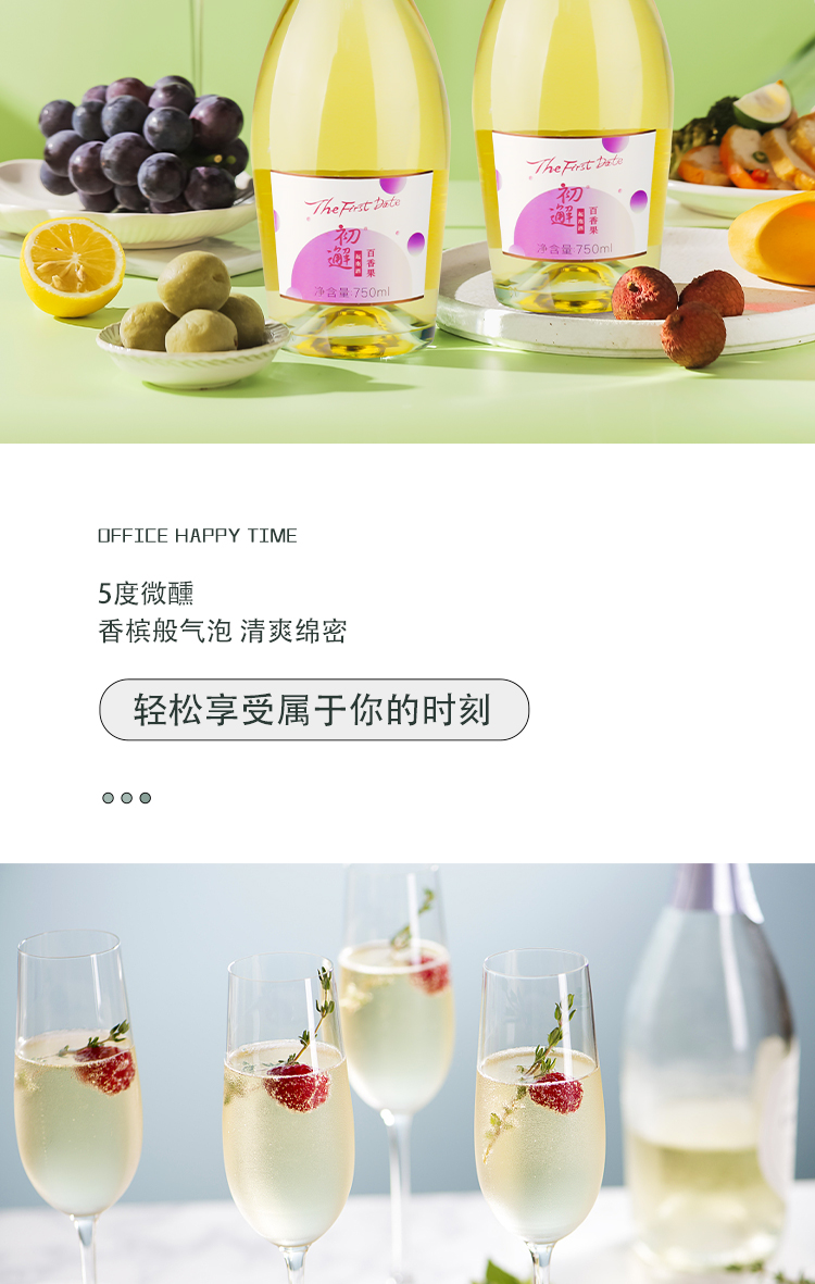 【单瓶装】初邂 百香果起泡酒750ml/瓶 5度气泡酒小甜酒鸡尾酒