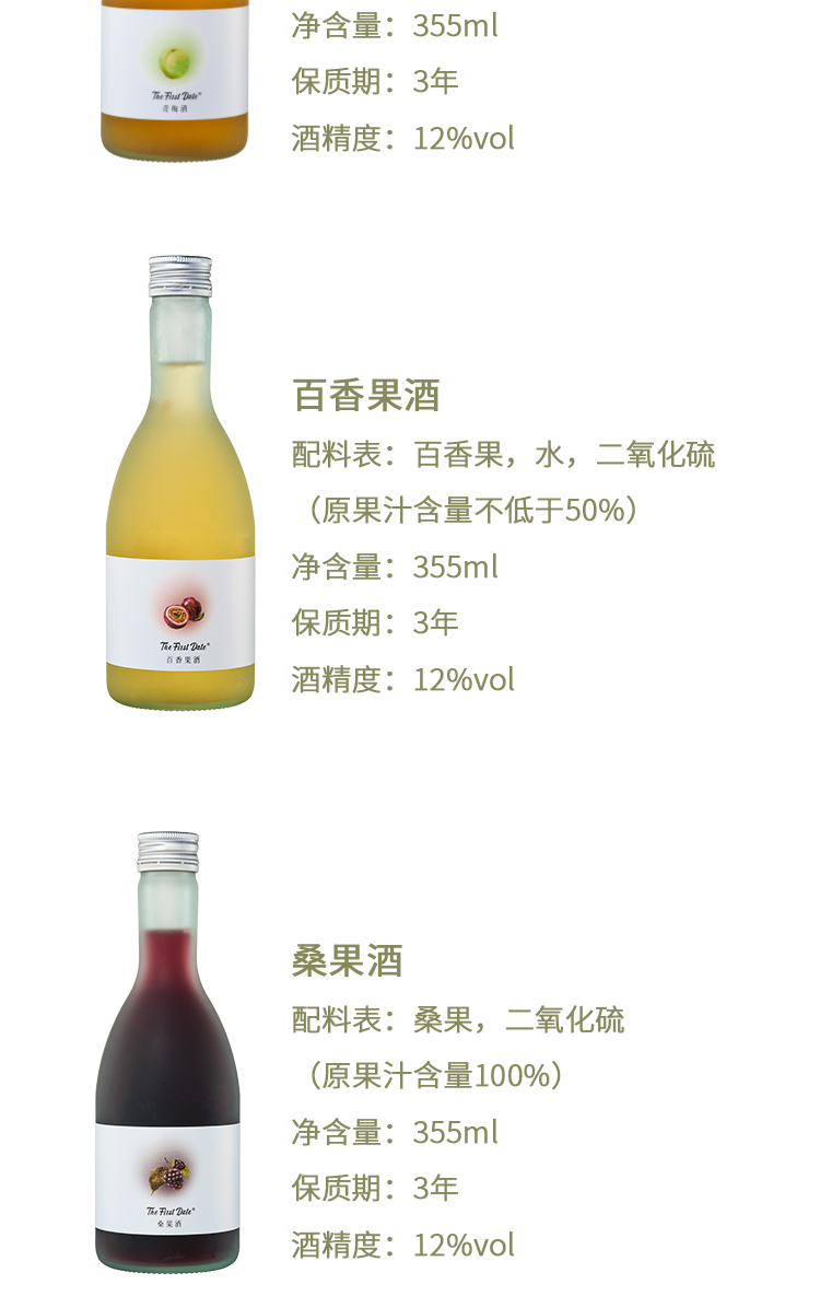 初邂 百香果酒 桑果酒 青梅酒355ml/瓶 高颜值微醺小甜酒水果酒