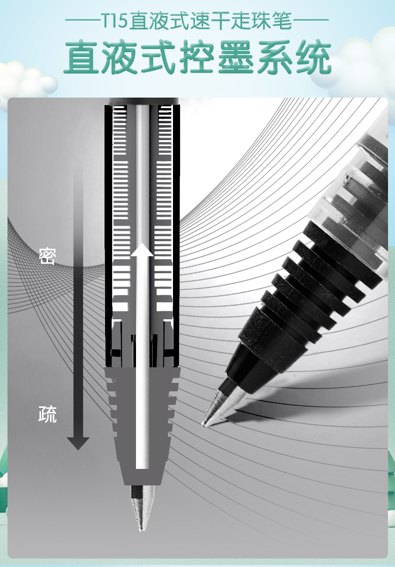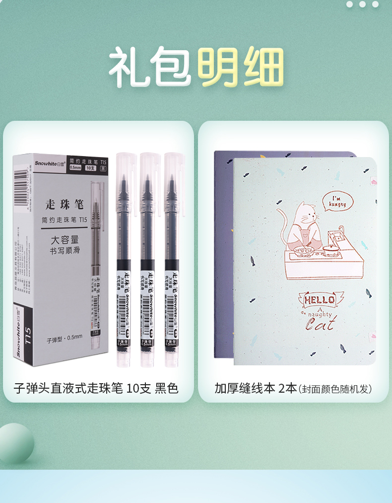 子弹头直液式走珠笔黑色10支+A5缝线本2本