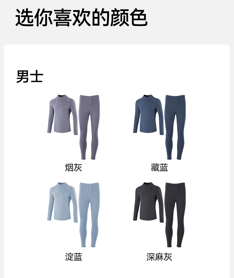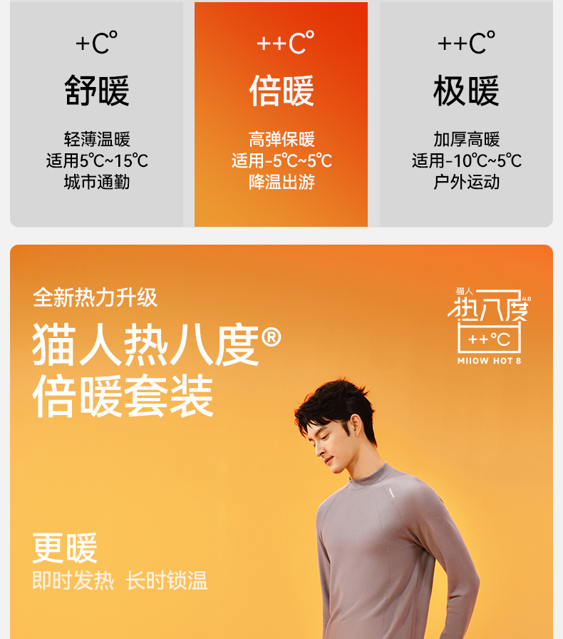 猫人 热八度4.0【倍暖】男女情侣款保暖内衣套装(半高领中厚款)