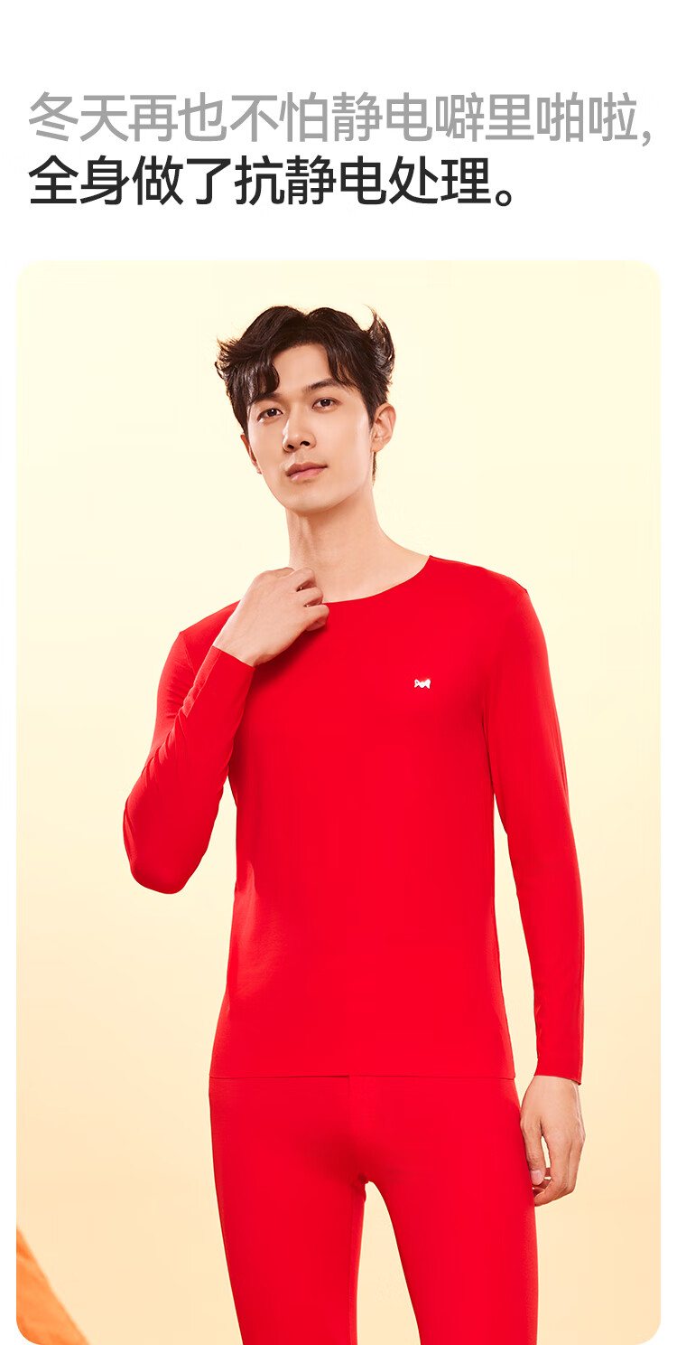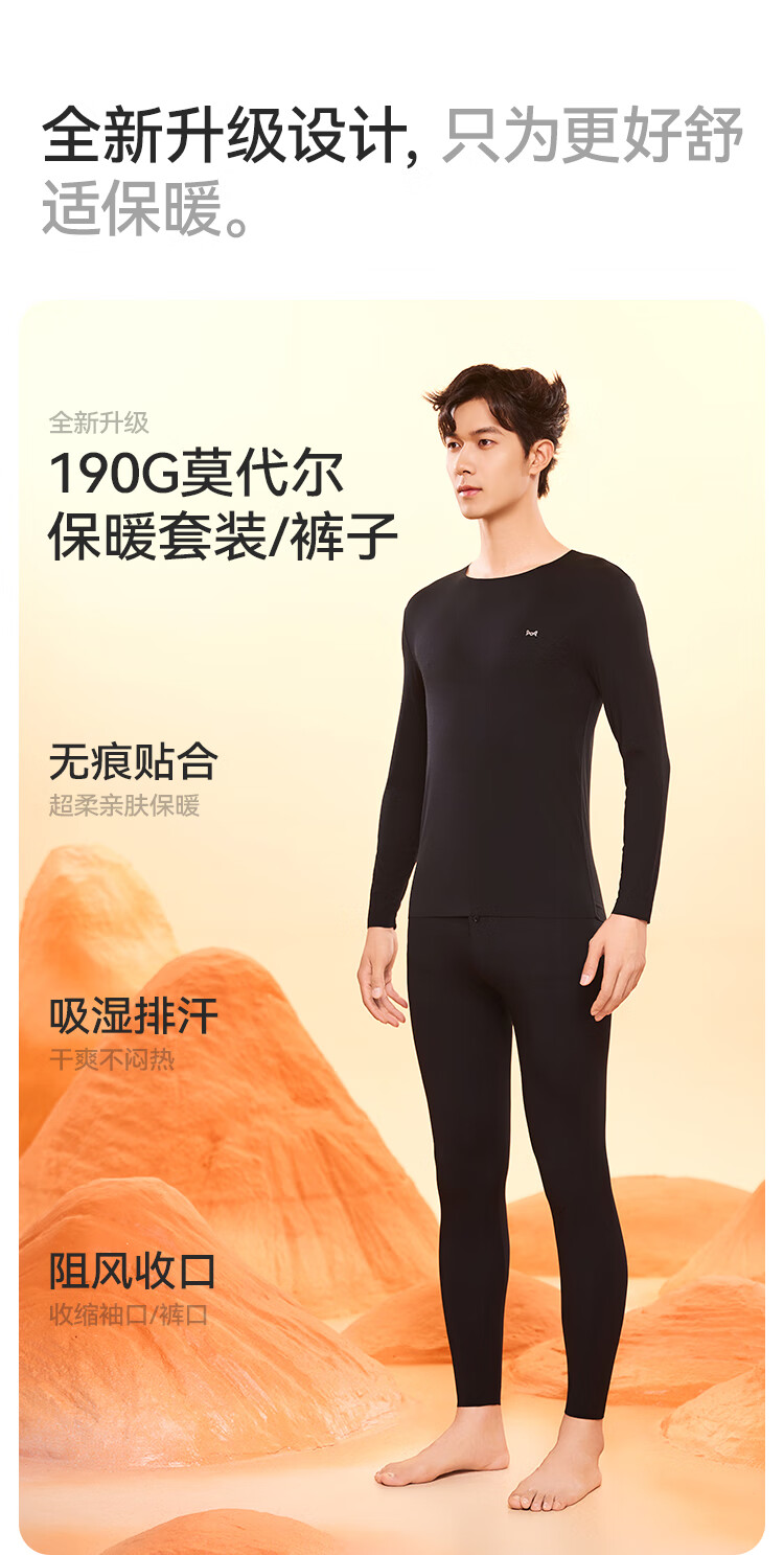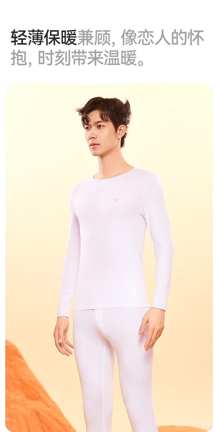 猫人 兰精莫代尔棉丝滑轻薄男女保暖内衣套装 打底秋衣秋裤高弹防静电圆领情侣款套装