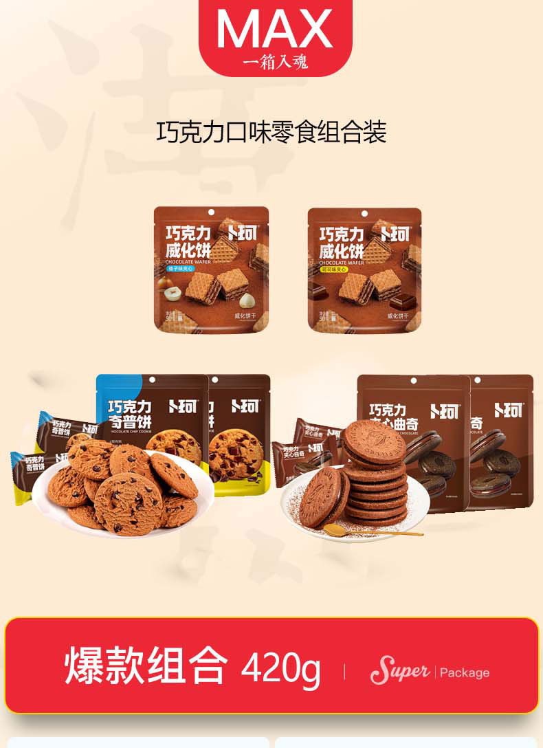 卜珂巧克力口味零食组合装420克 饼干糕点心零食品