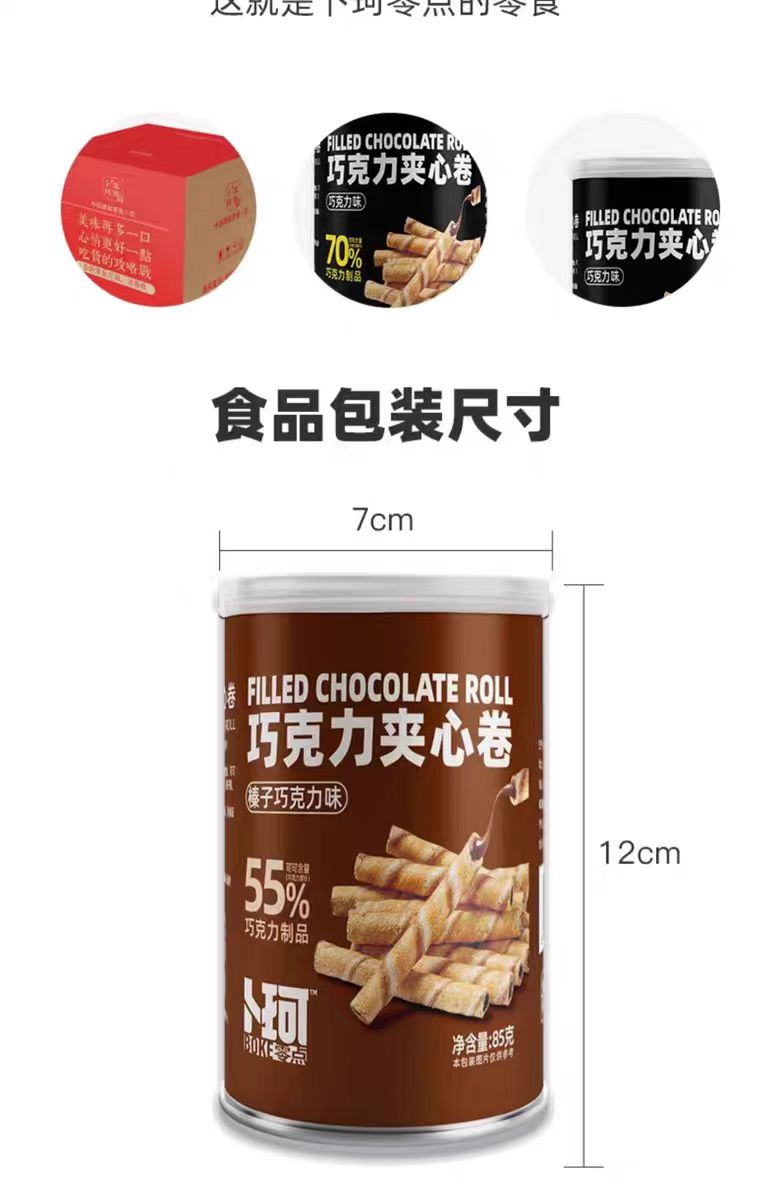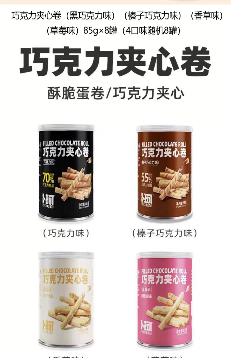 卜珂 巧克力夹心卷组合装680克 饼干糕点心零食品 4口味随机8罐
