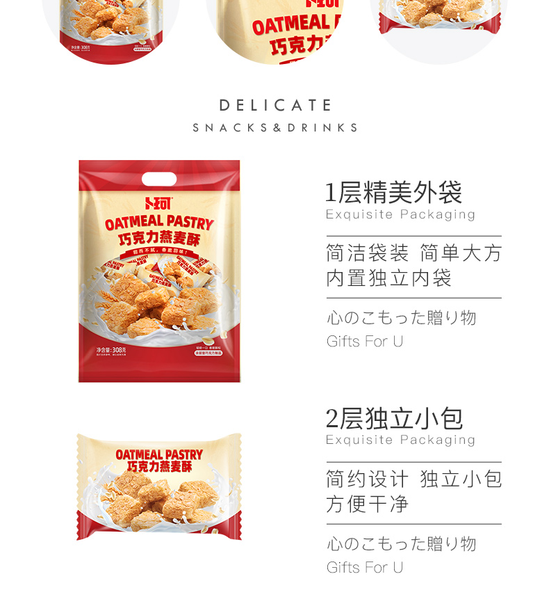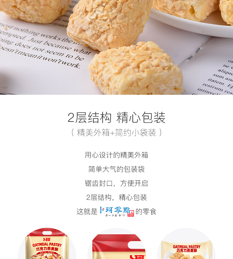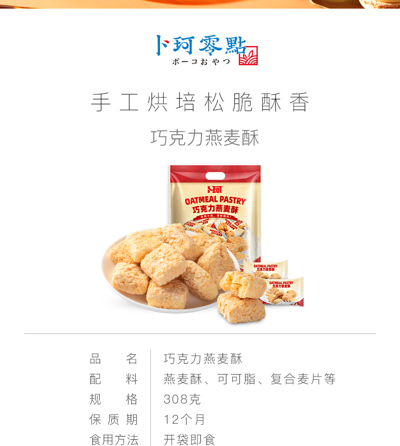 卜珂巧克力燕麦酥大袋超值装616克 饼干糕点心零食品 308g*2袋