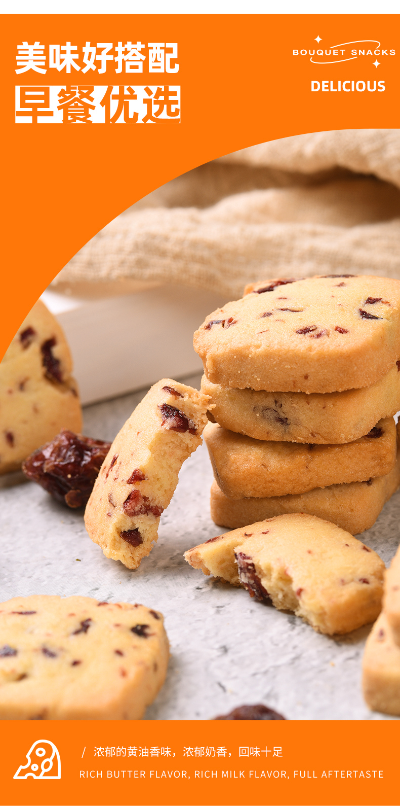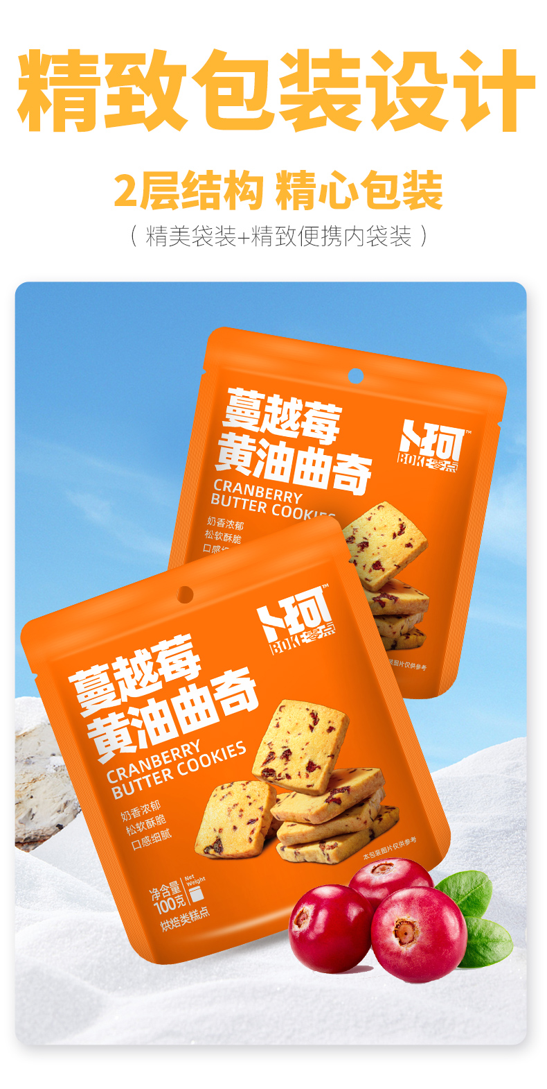 卜珂 蔓越莓黄油曲奇组合装600克 饼干糕点心零食品
