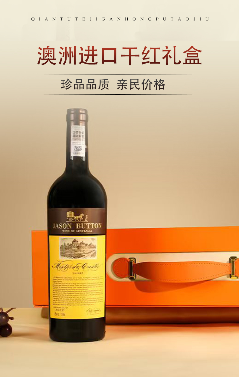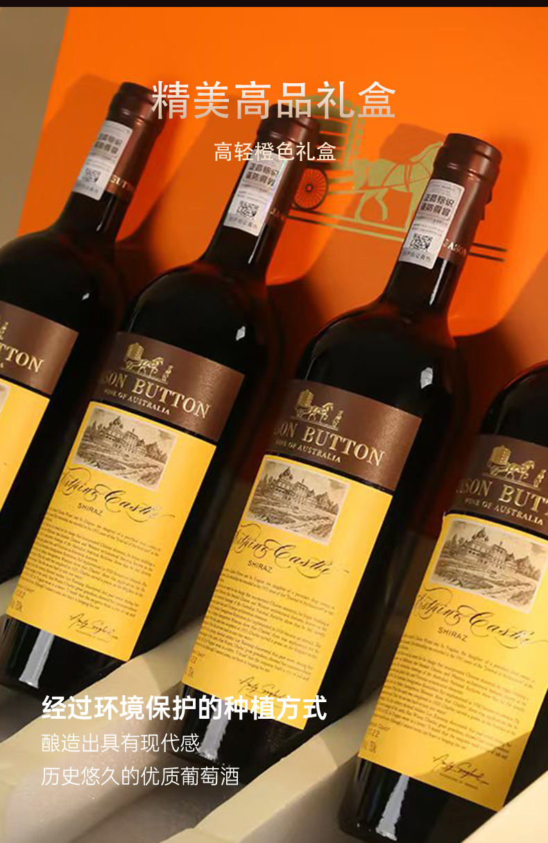 【礼盒4支装】杰森巴顿·雾凇古堡干红葡萄酒澳洲进口红酒礼盒 西拉干红葡萄酒