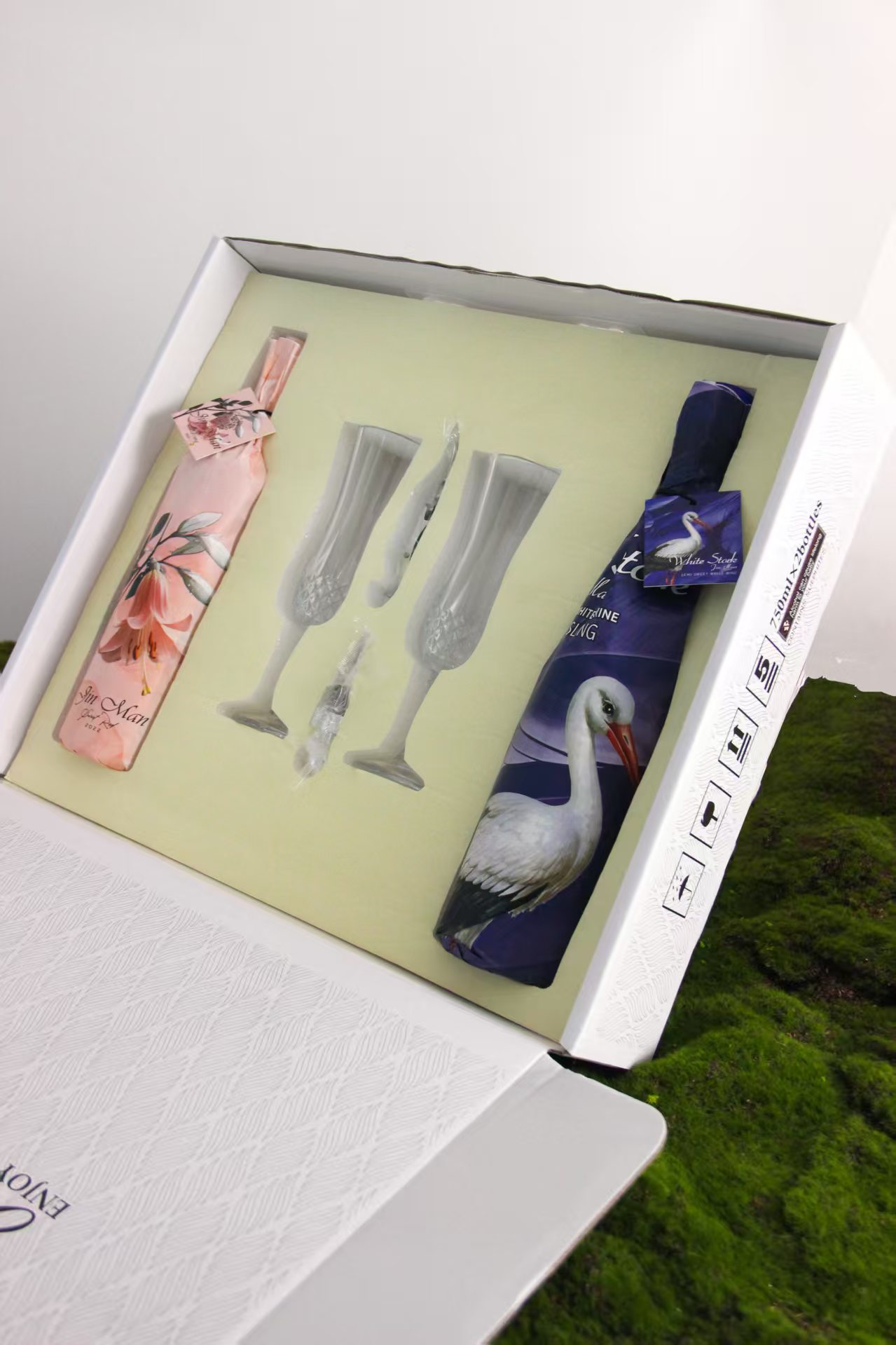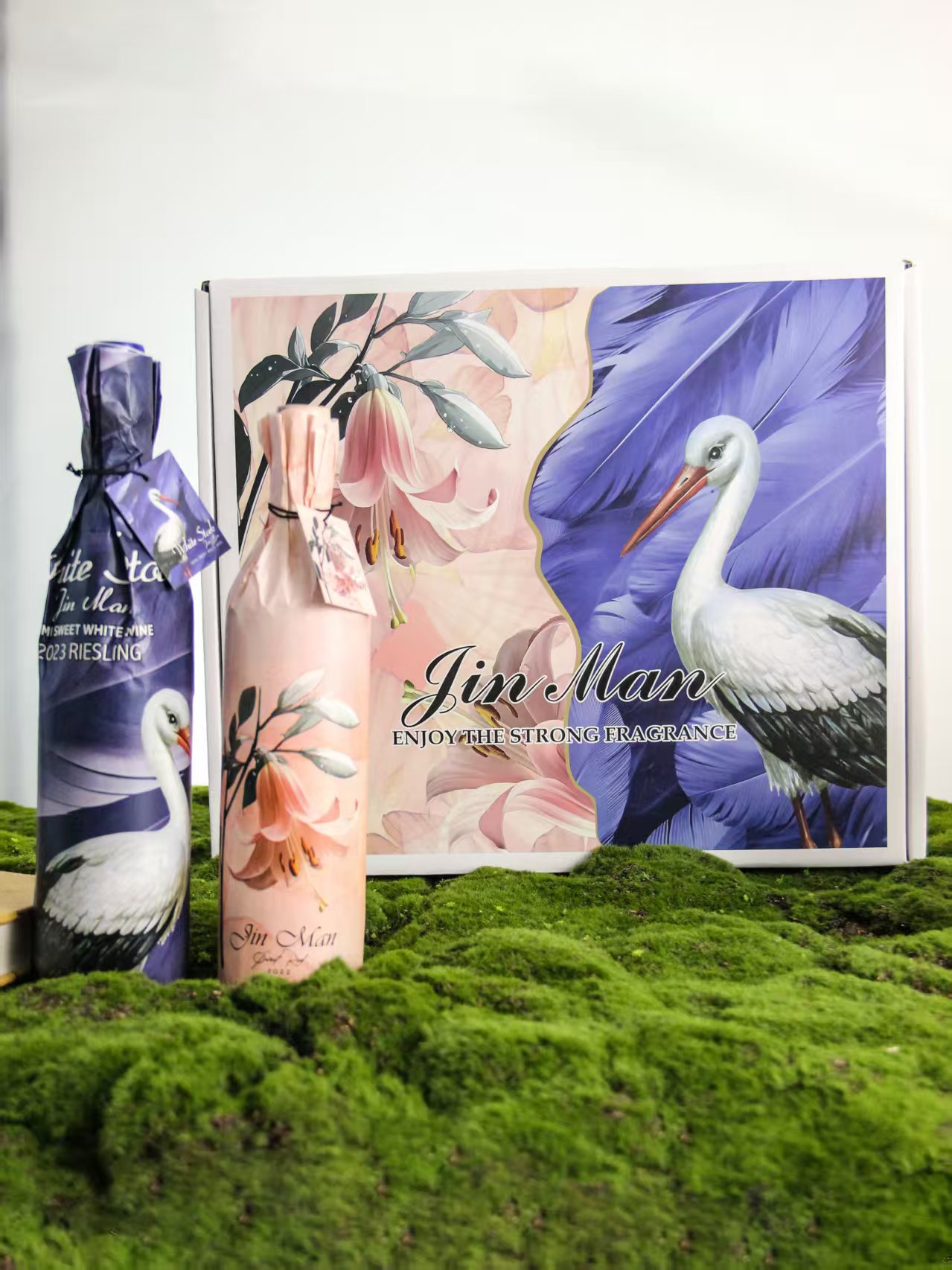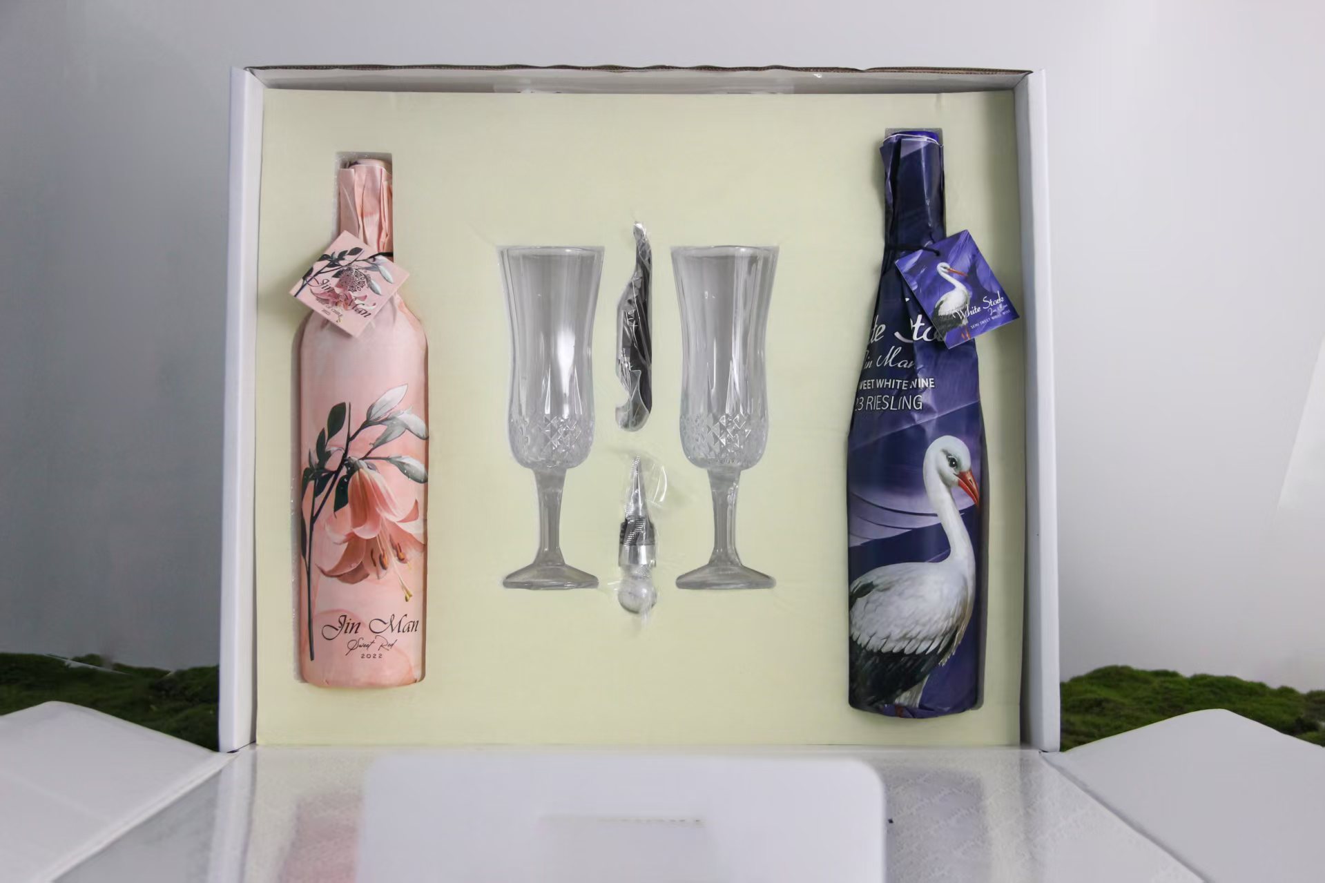 【送杯子】槿漫半甜白+甜红礼盒2支装 智利原瓶进口红酒 雷司令半甜白赤霞珠佳美娜美乐混酿甜红葡萄酒 750ML*2瓶/盒