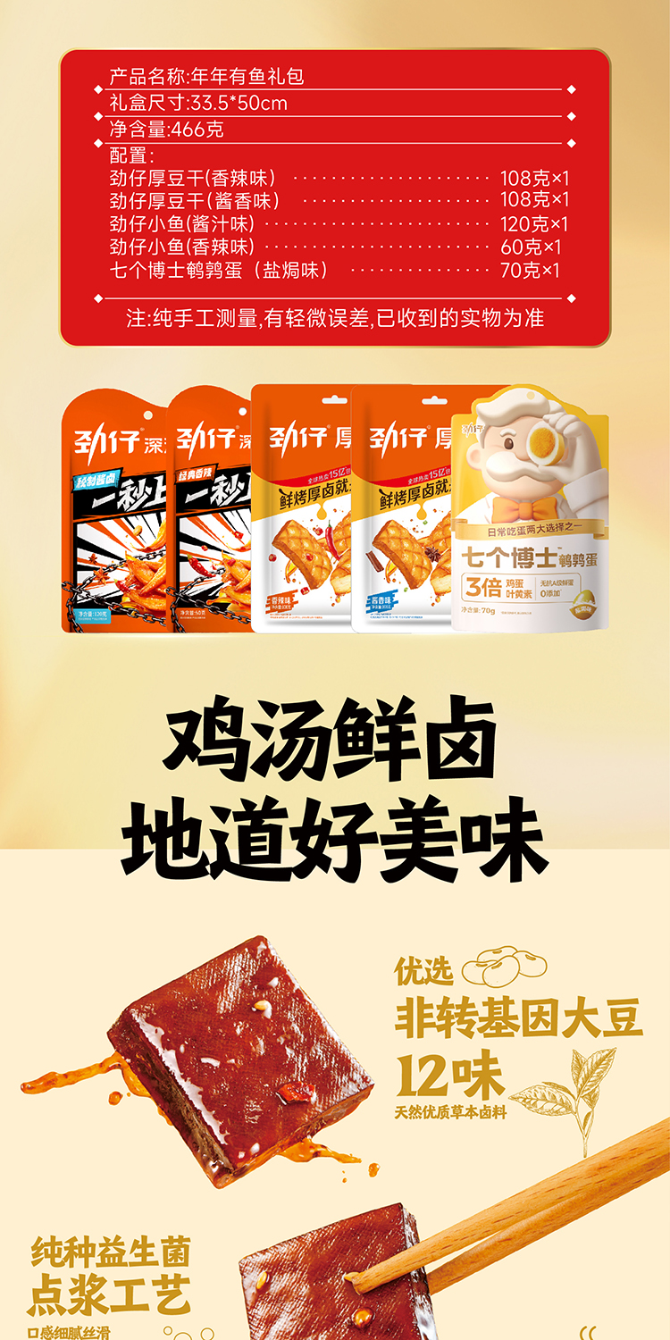 【劲仔】年年有鱼袋装466g 劲仔小鱼干豆干鹌鹑蛋零食大礼包