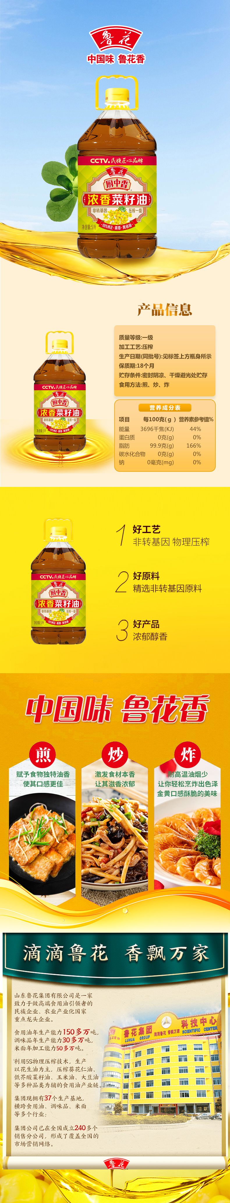 鲁花厨中香浓香菜籽油 非转基因食用油