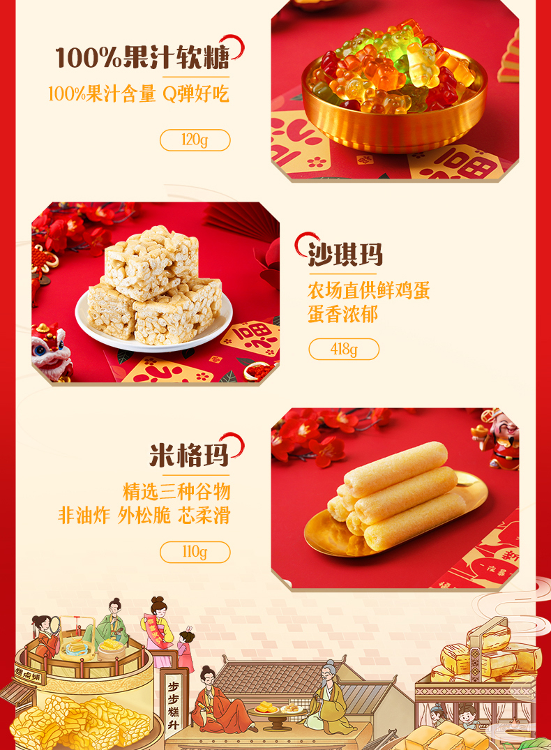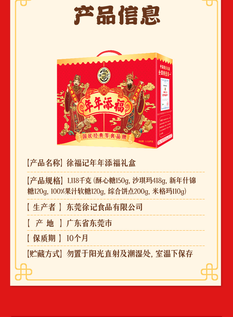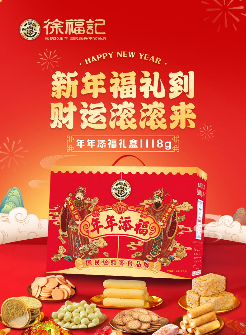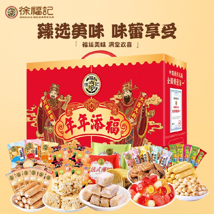 徐福记年年添福礼盒1118g 沙琪玛酥心糖果汁软糖零食礼盒礼包
