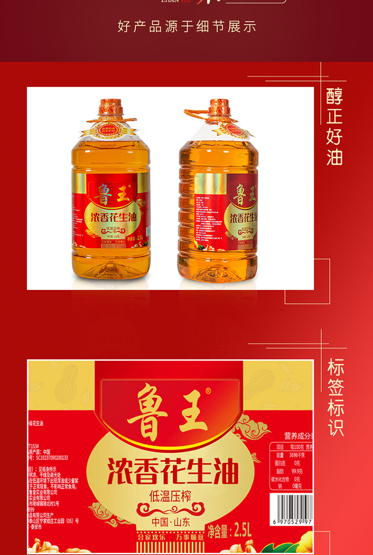 鲁王浓香花生油2.5L 食用油